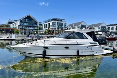 This 2013 Regal 35 Sport Coupe, OASIS, presents as a clean and appealing example with restored interior finishes, new upholstery, and Sea-Deck on the cockpit sole and swim platform. Twin 5.7L V8 gasoline power, joystick handling, an enclosed hardtop cockpit, and an electric sliding sunroof give this boat the versatility, comfort, and style that make the model so desirable in the express cruiser market. Note: New interior photos coming soon!