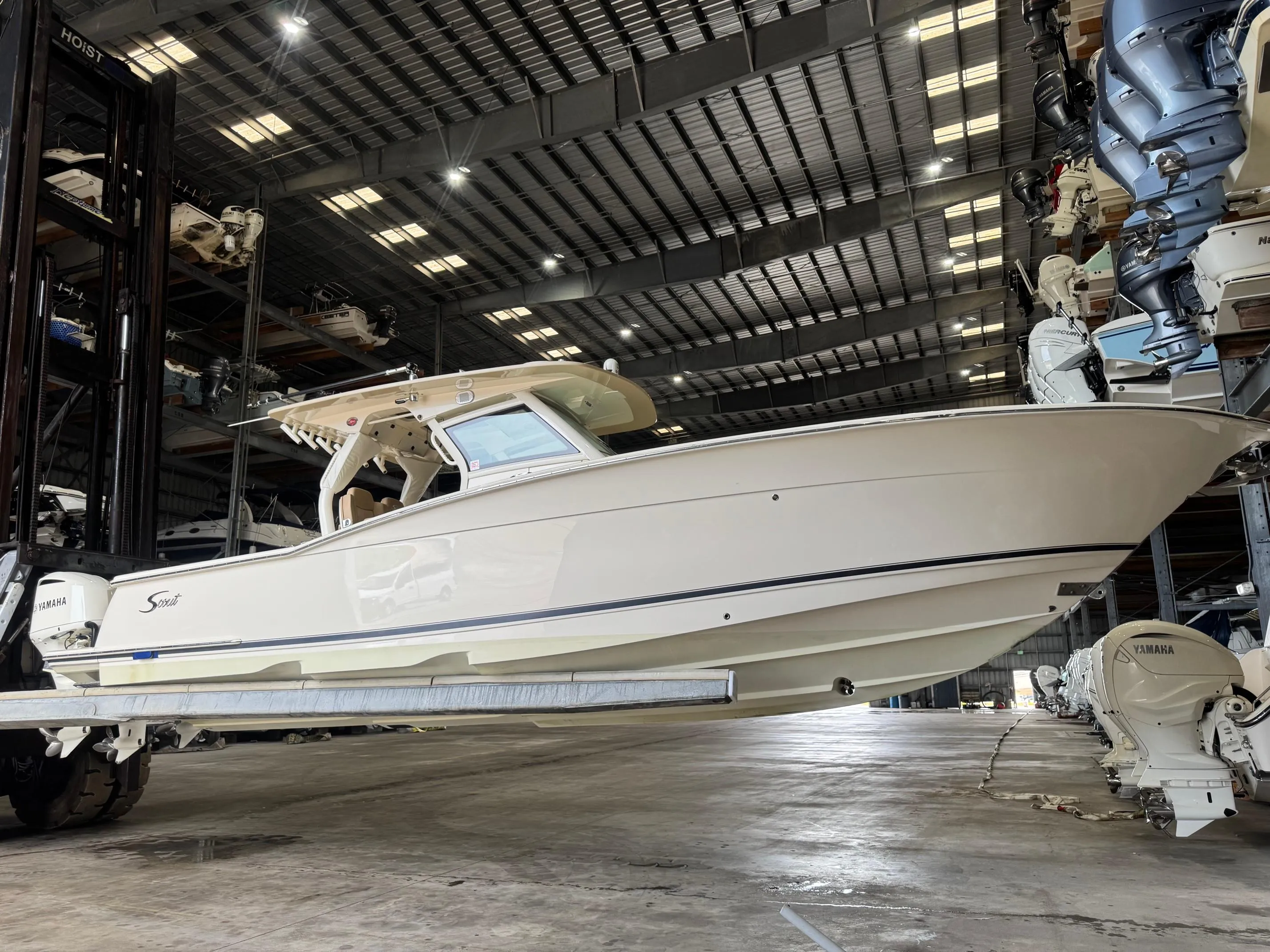 If you are in the market for 30-40 foot center console that can fish and still have the amenities for cruising then this 2019 35 Scout LXF is an excellent option. She is powered by triple 300 Yamahas with 760 hours and is up to date on service. Loaded with options including a bow thruster, full Garmin electronic package, and a tow eye just to name a few.  The boat is kept inside and easy to see at Yacht Basin in Galveston, Texas. Call the listing broker for more information or to schedule a showing.