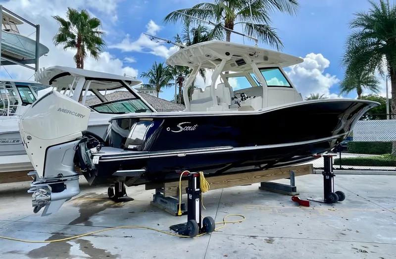 2022 Scout 355 LXF custom ordered by a multiple Scout and Yacht owner. Extended Warranty to December 2029 !!! Vantage Ceramic Coating warranty to Dec 2016. Triple Mercury 300 V8 with only 199 hours. No Bottom Paint, Always lift kept and properly maintained by her seasoned owner. Perfect layout for balance of creature comforts for the family, high performance tournament fishing amenities and cruising seating with a cabin equipped for day or overnight stays. Custom ordered vessel with the right options and the right equipment making a very special vessel. Owner just purchased larger boat which brings this boat to market. Incredible build structure with epoxy infused solid fiberglass hull and all fiberglass small parts.