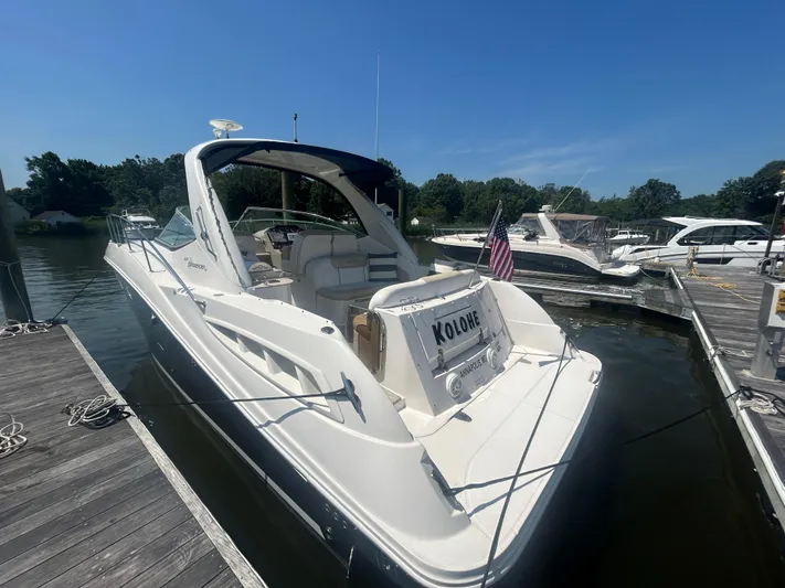 This 2008 Sea Ray 330 Sundancer blends classic Sea Ray styling with modern amenities, making it the perfect all-around cruiser for weekends on the water or extended getaways. Powered by twin MerCruiser engines with Bravo III drives, it offers confident handling and smooth performance. The large cockpit is ideal for entertaining, with wraparound seating, a wet bar, and canvas for shade and protection. Below deck, the well-appointed cabin features a forward berth, mid-cabin lounge, full galley, and a spacious head with a shower—comfortably sleeping four to six guests. The 330 Sundancer is known for its balance of performance, comfort, and build quality, making it a highly sought-after express cruiser. Whether you’re cruising the bay or relaxing at anchor, this Sea Ray is ready to deliver memorable days on the water.