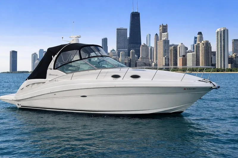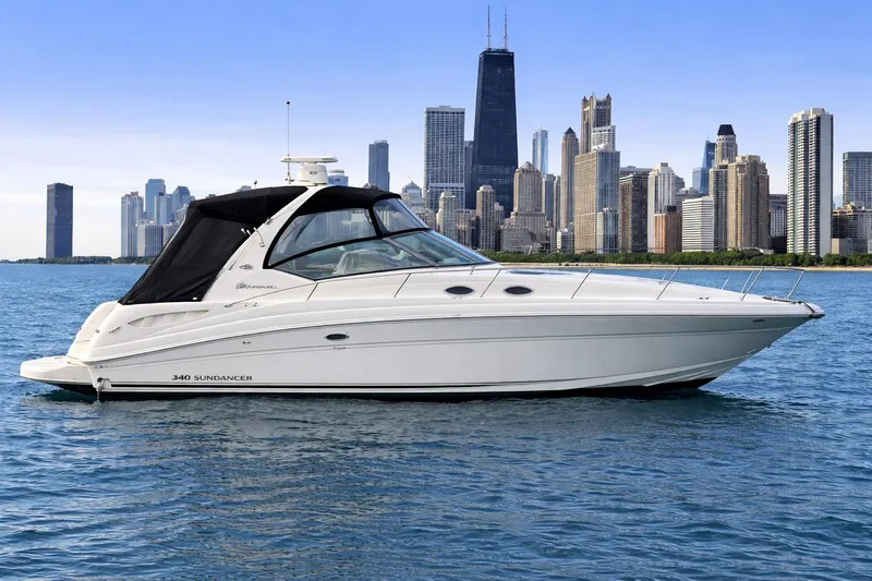 In the 340 Sundancer, high performance, comfort and quality are beautifully combined in one sleek cruising package. Powered by twin 8.1 MPI MerCruiser V-drives, the 340 Sundancer is the ticket that will let you discover a whole new world of boating. A roomy, redesigned cockpit offers plenty of opportunity to relax, and her sleeping accommodations for six mean family and friends can go right along with you.