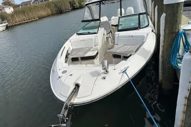 Introducing the stunning 2019 Sea Ray SLX 350 Outboard, a remarkable bowrider that seamlessly blends style and performance. With an impressive overall length of 35 feet, this vessel boasts a sleek fiberglass hull, ensuring durability and a smooth ride on the water. Powered by twin Mercury Varado outboard engines, each delivering 350 horsepower, this boat promises exhilarating speed and agility, making it perfect for both leisurely cruises and thrilling adventures. With only 35 hours, the engines are in excellent condition, ready to provide an unforgettable experience. The SLX 350 is designed for comfort and convenience, featuring modern equipment that enhances your time on the water. Whether you're entertaining guests or enjoying a day of relaxation, this boat offers ample space and a luxurious feel. Experience the perfect blend of performance and elegance with the Sea Ray SLX 350 Outboard.