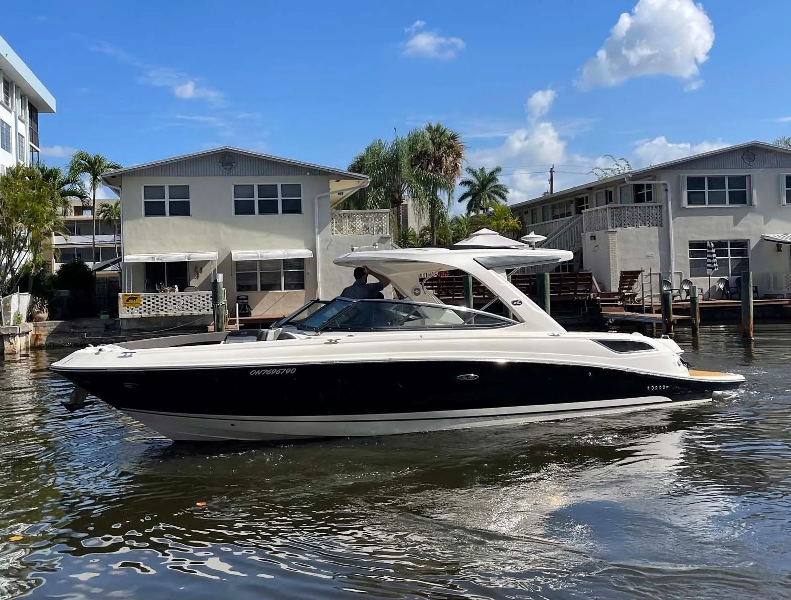 Highly optioned with Axius joystick, air conditioning, inverter, retractable sunroof, retractable aft sunshade, Teak swim platform, cockpit Teak flooring, cockpit wet bar with grill and refrigerator.