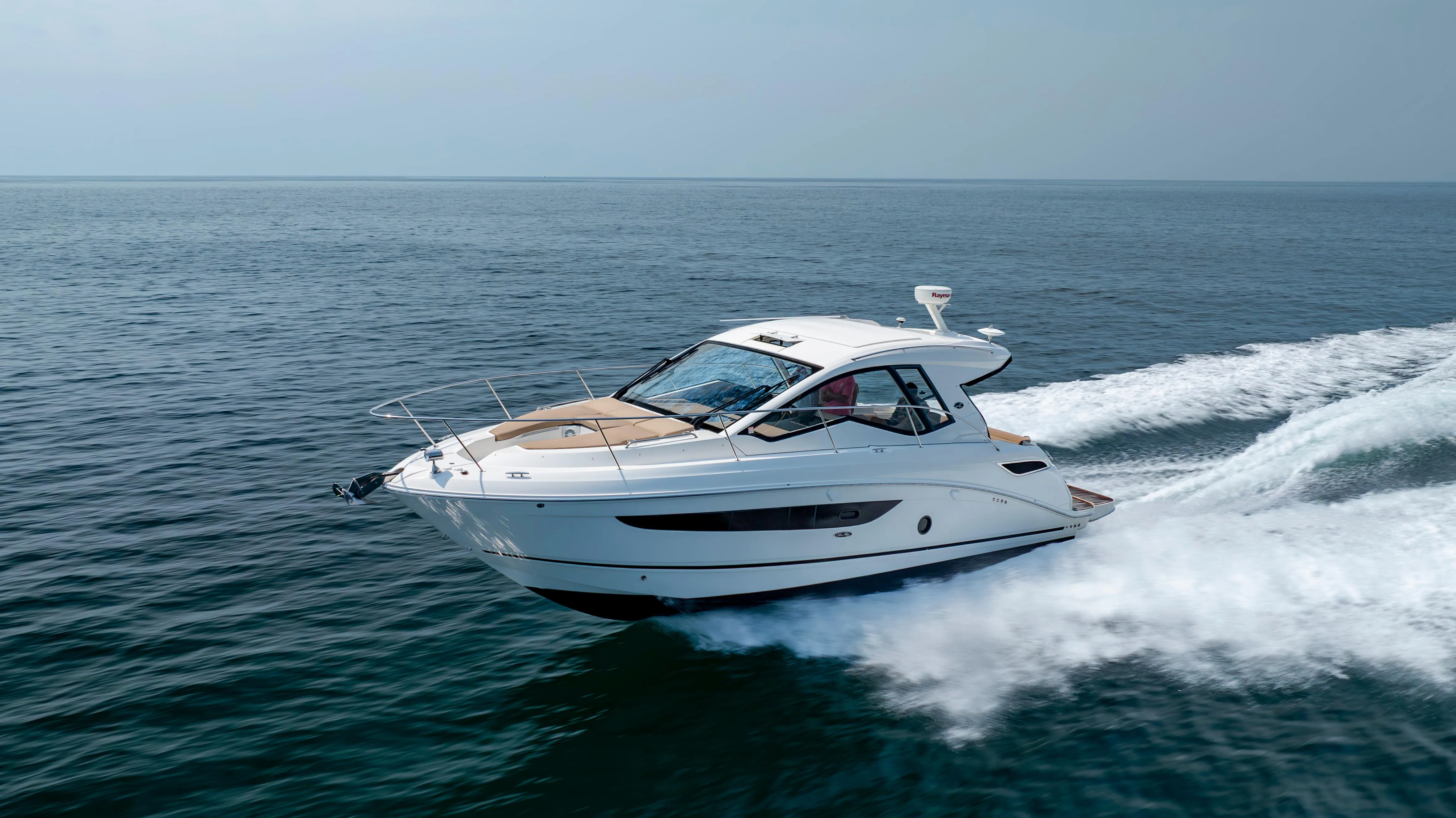This Sea Ray 350 Coupe blends comfort, class, and performance in one beautifully designed package. From her spacious cockpit and comfortable air-conditioned cabin to her intuitive helm and joystick control, she checks all the boxes for the discerning cruiser.