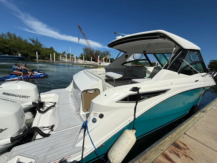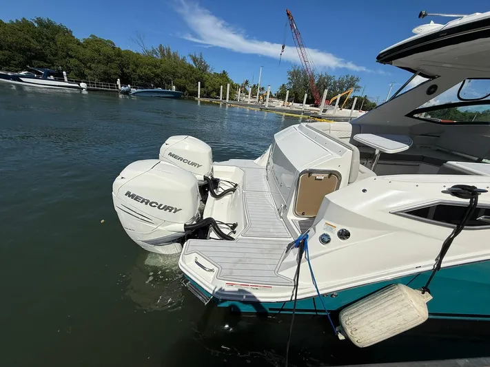 Engine and generator service completed 7/19/25. Mercury Engine Warranty's Through 8/2027! Sharrow Props! $3,000 each provide 4.4 MPH Faster at WOT 19% Better Fuel Efficiency at 34 MPH (verified on this model). Bottom paint 7/25, professional detailing including full wax of hull and topsides 7/25.