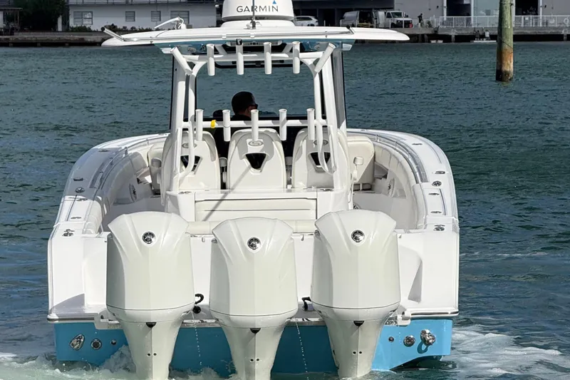 When designing the Open 352, every detail was designed-in taking great care to craft a boat that is functional and elegant. The hard-top is a great example of this with all of its integrated lights, recessed speaker mounting locations, bent custom D-Tubing and strong ladder-back piping.