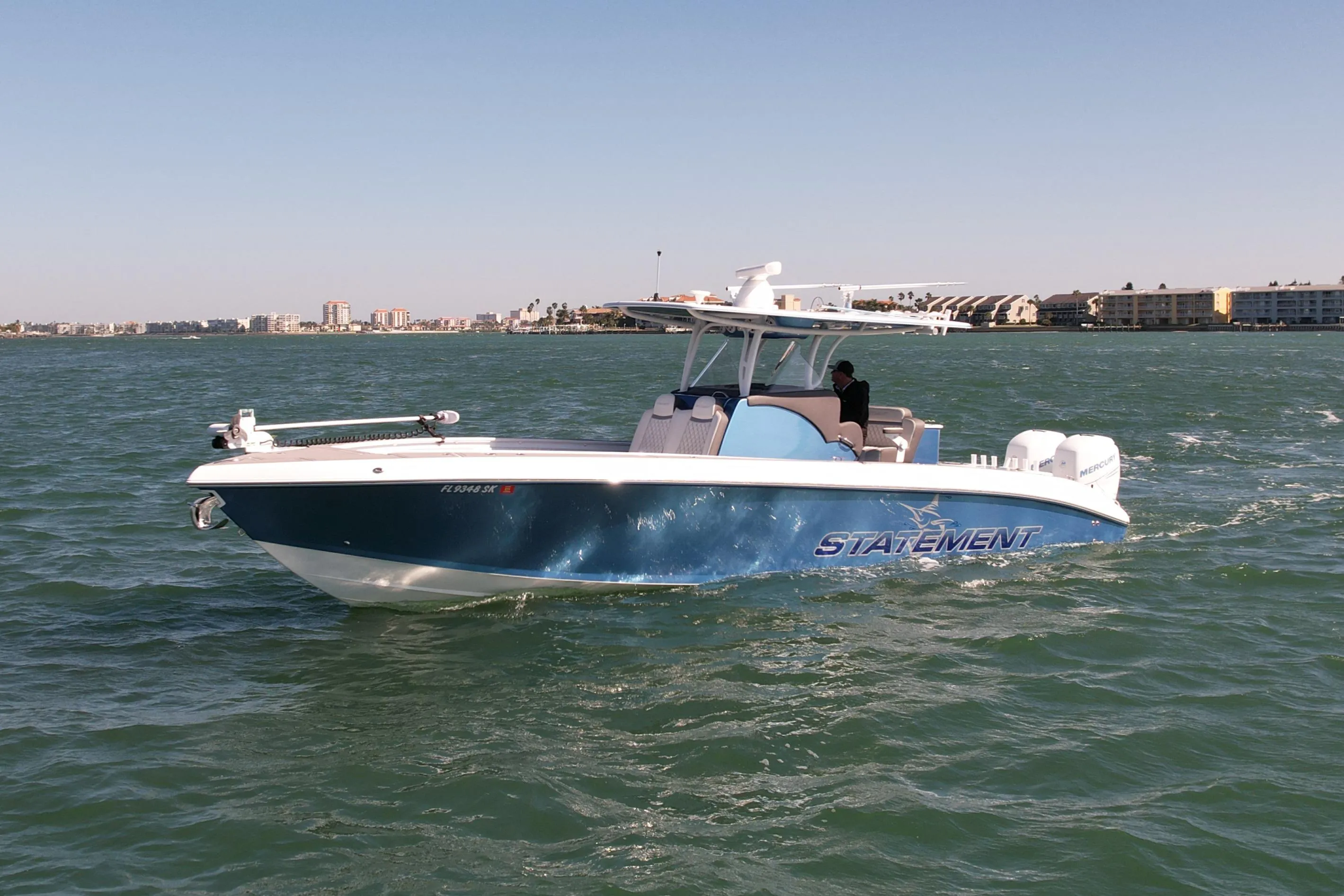 2. **Open Concept Design:** The Statement 350 Open is designed for those who love the freedom of open waters. With a spacious deck layout, comfortable seating, and a well-appointed helm station, this center console provides the ideal platform for a variety of on-water activities.
