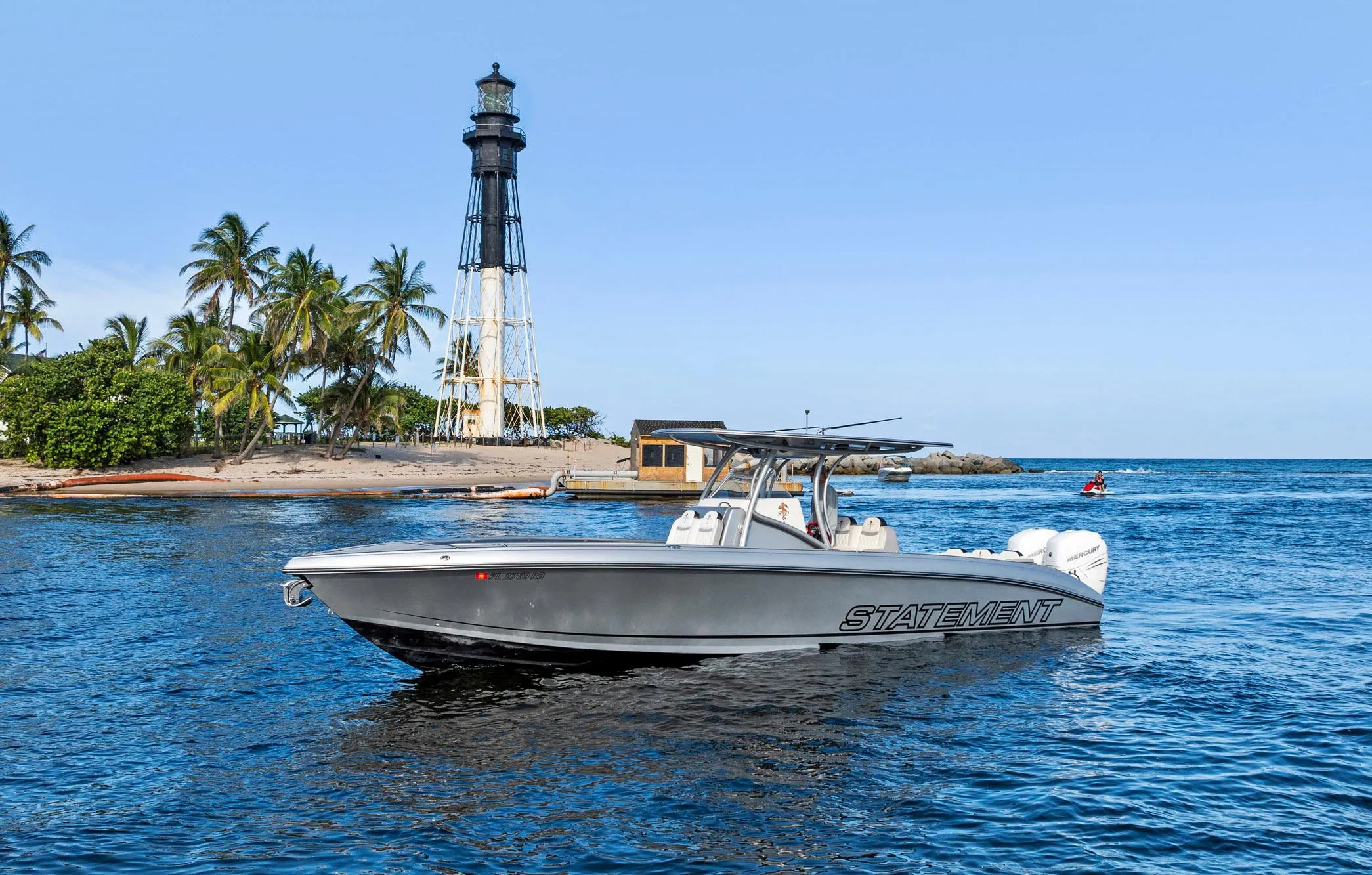 This 2016 Statement 350 is immaculate, features all premium options, and shows like a 2022. Timeless styling, the color scheme is neither loud nor obnoxious. She has always been washed, lift kept, and covered. Truly “open-checkbook” maintained, there are no underlying issues. Everything works as it should! Once the old motors even hinted at being unreliable, the owner immediately decided to re-power with twin Mercury L6 400 Verados, installed 2/2024 and under warranty until 2/2029! This is a must-see boat. The seller is motivated. It will not last long!