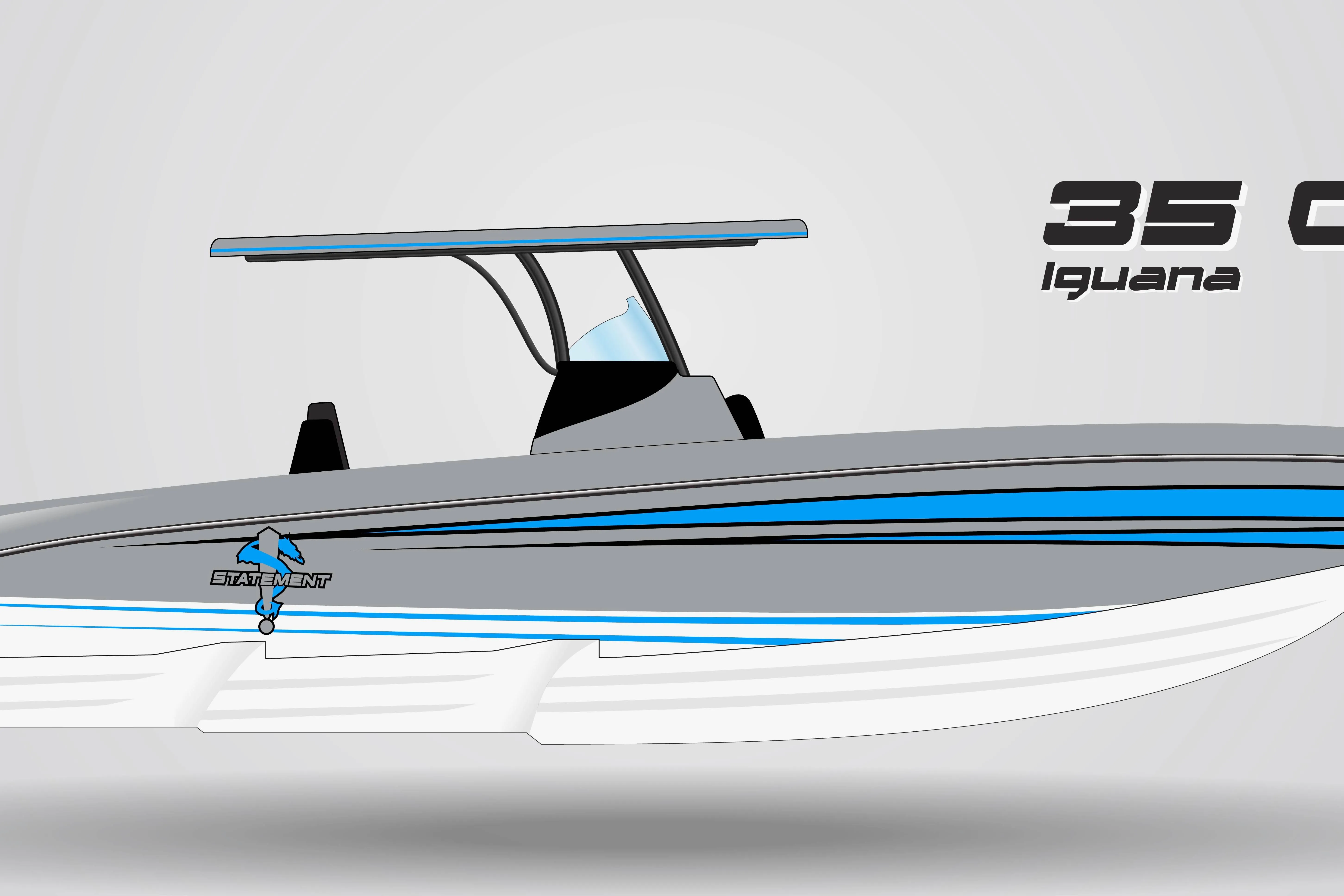 This Statement 350 Open comes equip with color matched Triple Mercury 300Rs, painted hull sides, Powdercoat package, 6mm Marine mat flooring also comes with Bow Seating, Helm Seating w/ rear-facing lounge, Hard top fiberglass, aft sport bench w/ backrest, JL audio AM/FM Bluetooth with remote, M3 speakers, M3 10" subs, XDM amps 2400 watts (w/LEDs), Power windless w/bow remote an helm switch, Bow thruster, battery charger, House battery Deep cycle, transom fresh water shower and Dual Garmin 8616.