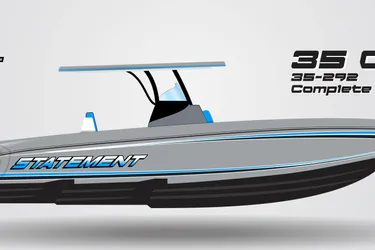 This Statement 350 Open comes equip with color matched Triple Mercury 300Rs, painted hull sides, Powdercoat package, 6mm Marine mat flooring also comes with Bow Seating, Helm Seating w/ rear-facing lounge, Hard top fiberglass, aft sport bench w/ backrest, JL audio AM/FM Bluetooth with remote, M3 speakers, M3 10" subs, XDM amps 2400 watts (w/LEDs), Power windless w/bow remote an helm switch, Bow thruster, battery charger, House battery Deep cycle, transom fresh water shower and Dual Garmin 8616.