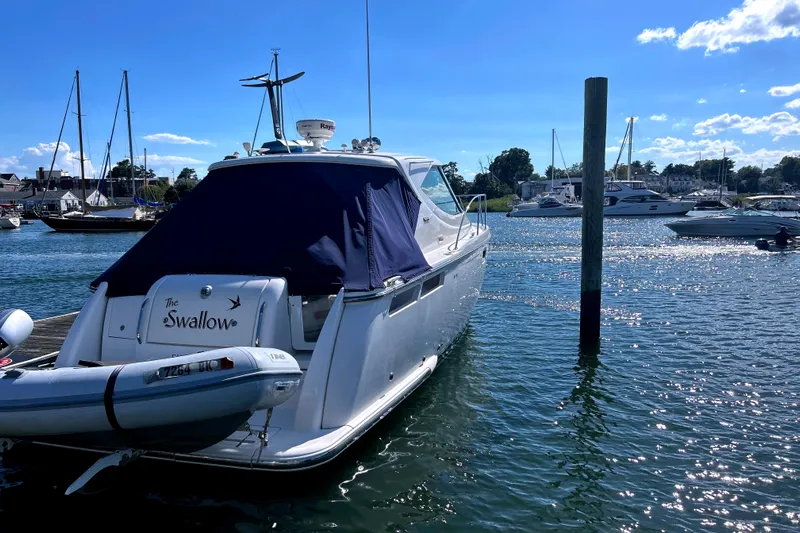 The Swallow is a well-maintained Tiara Sovran 3500. She is powered by twin Volvo IPS 400 Pods with joystick control. Her ride is smooth and dry. The raised cockpit provides excellent visibility all around the vessel.  The nearly 13' beam provides an extremely spacious cabin for a 35 footer.