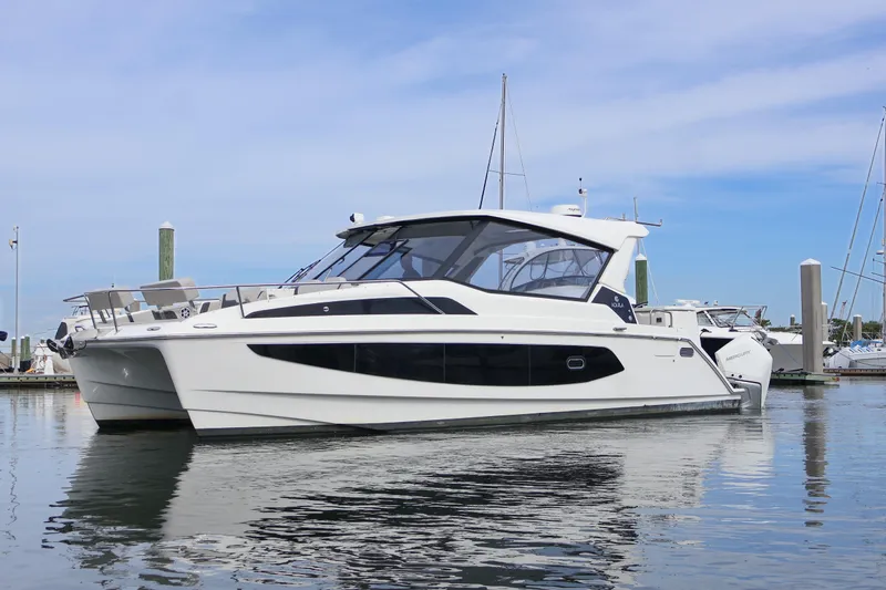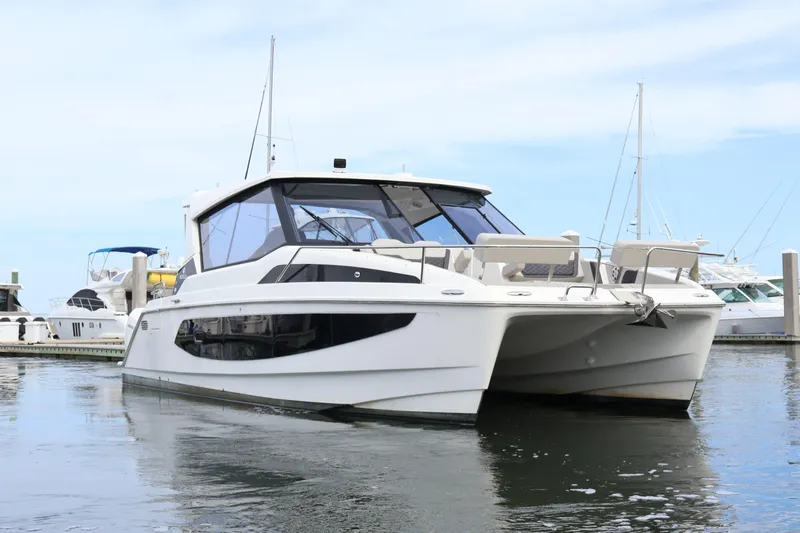 Step aboard the 2023 Aquila 36 Sport Power Catamaran and experience the perfect blend of performance, space, and luxury. With just ~175 hours on twin Mercury 300s, this boat offers like-new reliability without the wait of ordering new.