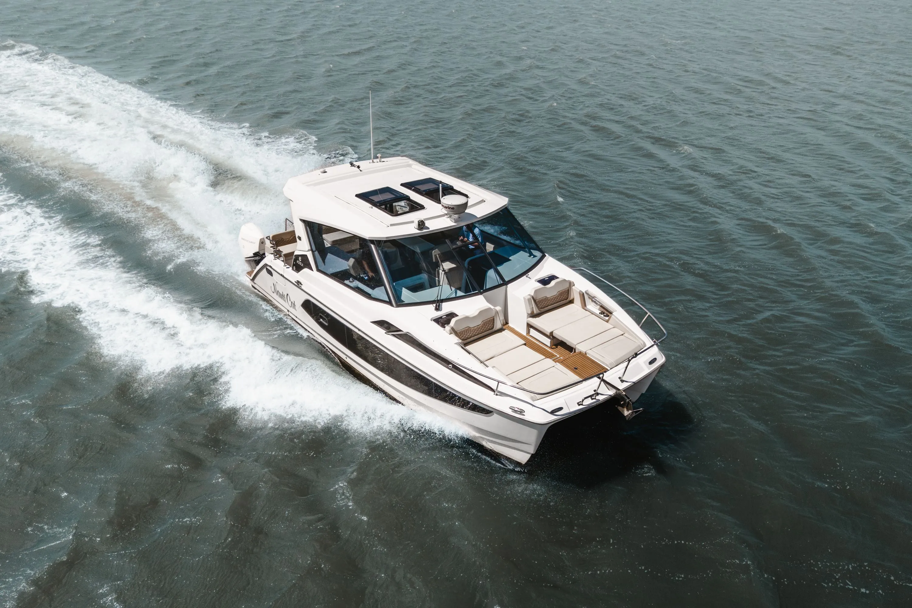 Built for both efficiency and offshore confidence, the Aquila 36 Sport delivers smooth, stable handling thanks to its catamaran design. Twin outboards provide exhilarating speed and impressive range, while maintaining excellent fuel economy compared to monohulls in its class.