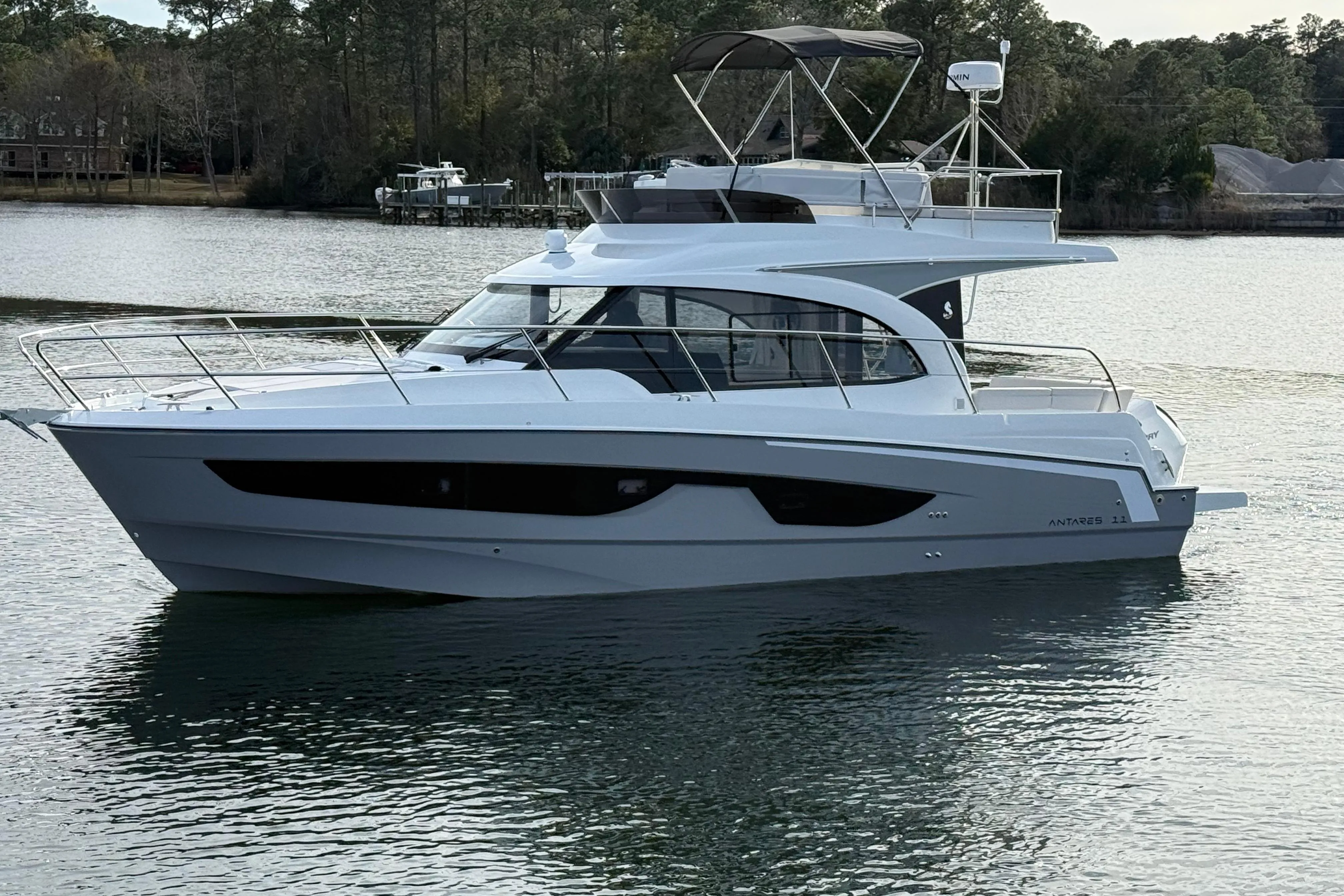 In-stock and available for immediate delivery! Well equipped and ready to cruise or complete America's Great Loop. We are the Beneteau outfitting professionals, we can add Starlink, Solar, Dingy Rack, Ceramic Coating, Water Maker, Window Tint and many other accessories to your new Antares 11 FLY. Our upfront pricing includes full tank of fuel, all required USCG safety equipment, basic boating gear and on-water orientation with no hidden fees. We accept trades and have competitive financing available. Give us a call today to reserve this Antares 11 FLY and beat the upcoming price increases!