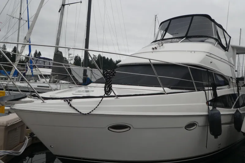 Introducing the exquisite 2006 Carver 366 Motor Yacht, a stunning example of luxury and performance in the world of motor yachts. With an overall length of 36 feet, this vessel boasts a sleek fiberglass hull, ensuring durability and a smooth ride on the water. Powered by twin Volvo Penta 8.1 Liter inboard engines, each delivering an impressive 375 horsepower, this yacht promises exhilarating performance for your cruising adventures. The Carver 366 offers comfortable accommodations with two well-appointed cabins and two heads, perfect for relaxing after a day on the water. Equipped with an electric windlass, this yacht enhances your boating experience, making anchoring effortless. With a total of 595 hours on the engines, this used motor yacht is ready for new journeys, combining style, comfort, and reliability for unforgettable outings on the open sea. Experience the joy of boating with this remarkable vessel. Recently bottom painted with NEW shaft seal, NEW water pumps and previously updated risers and manifolds she's ready to go!