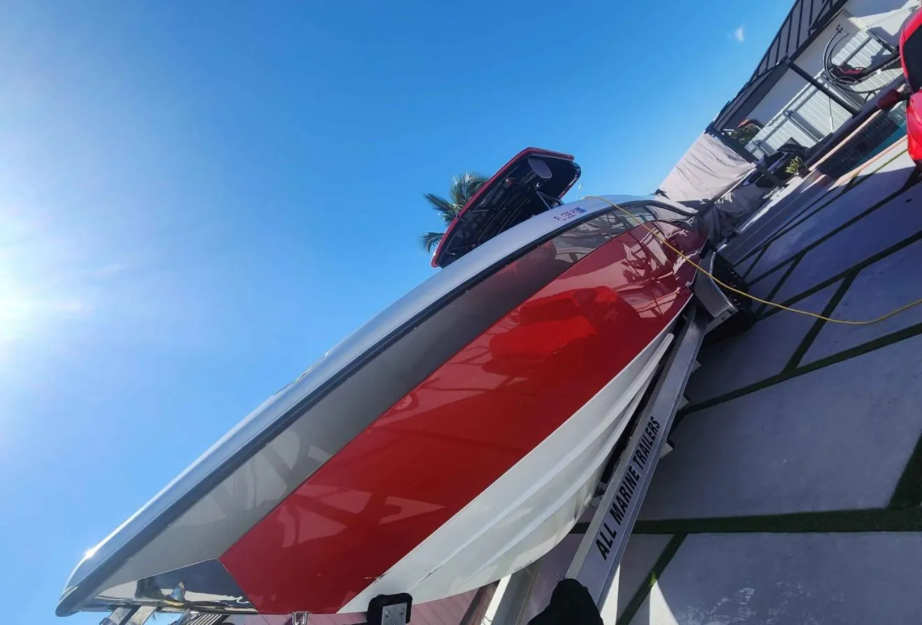 all boat accessories, including a sleek T-top, made entirely of carbon fiber – a mark of sophistication