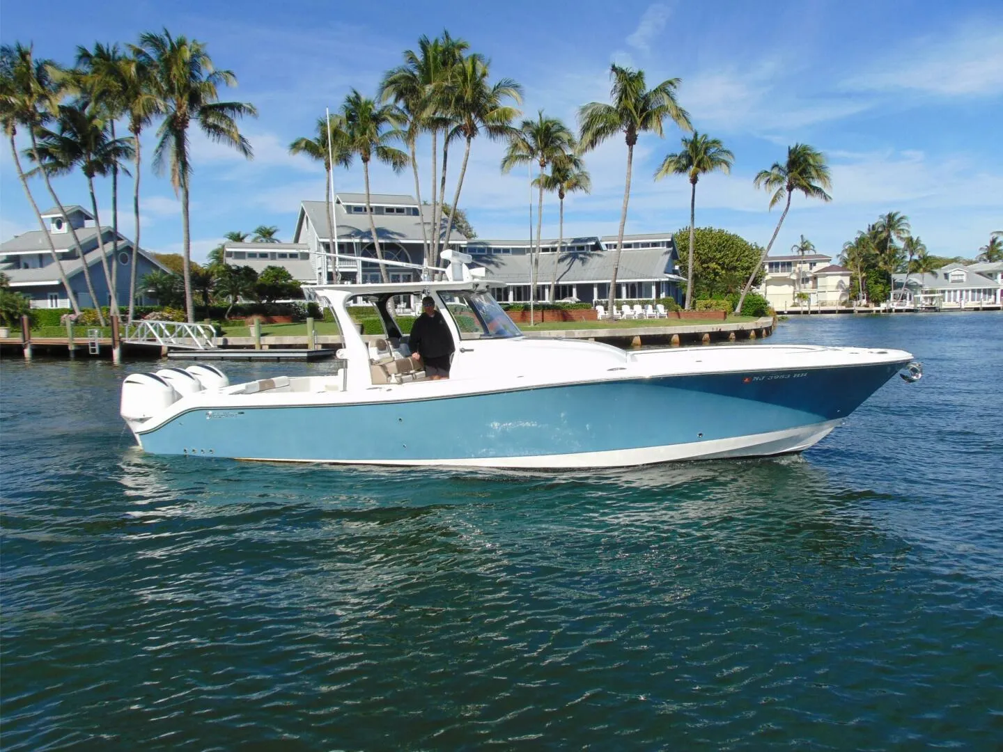 The 368 Edgewater is a very well laid out, all around use, center console. She has a respectable beam and a great deep V 20-degree deadrise. The cabin has great head room with a nice galley-etc., and head. There is seating aft and forward with plenty of storage. This center console can achieve speeds in excess of 50 knots.