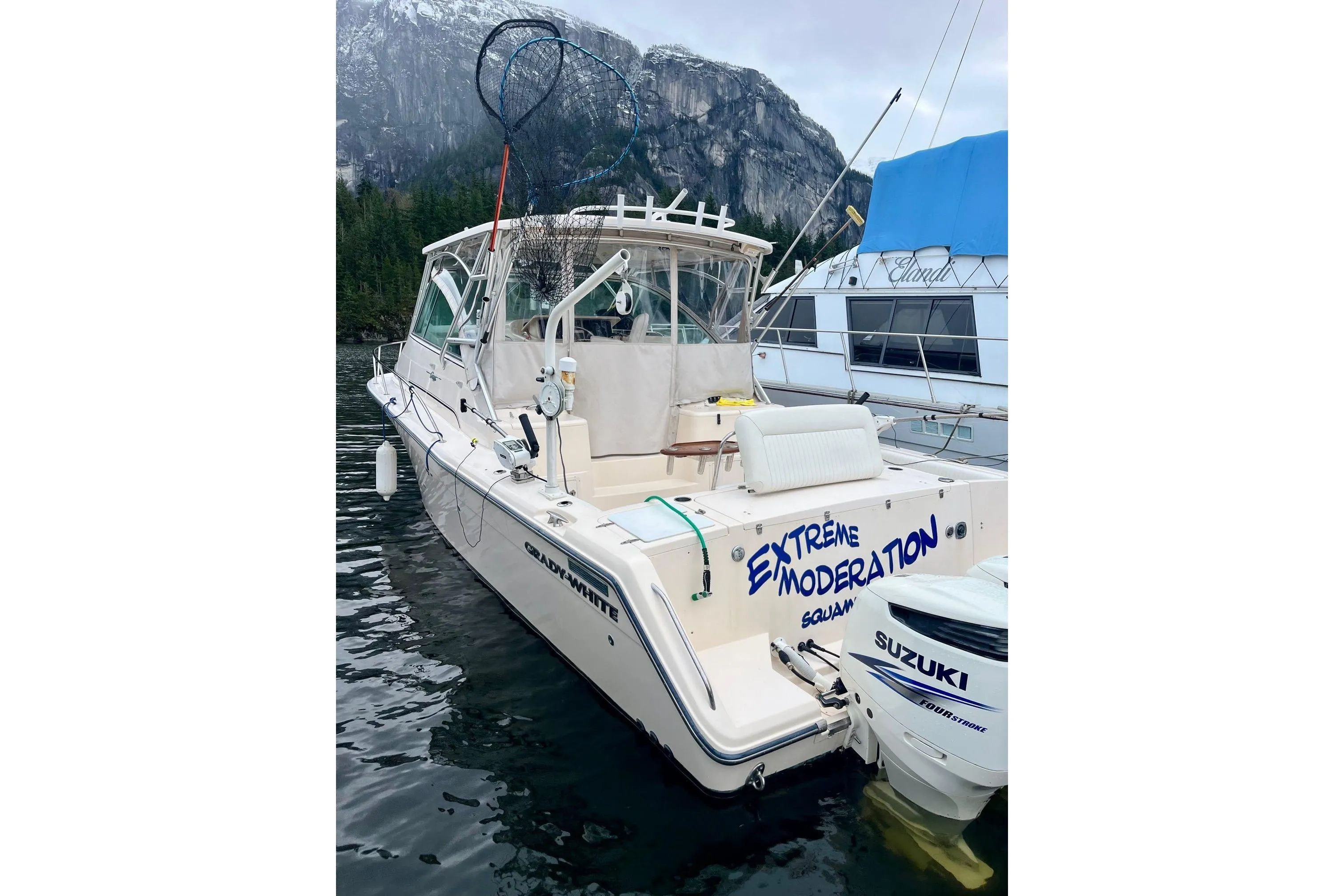 “Extreme Moderation” is everything you could ask for in an '05 Grady. Well maintained, well loved and with newly installed engines that are exceptionally quiet. There were extensive upgrades during the 2025 season including new Radar, new canvas, new batteries and a new bow thruster.