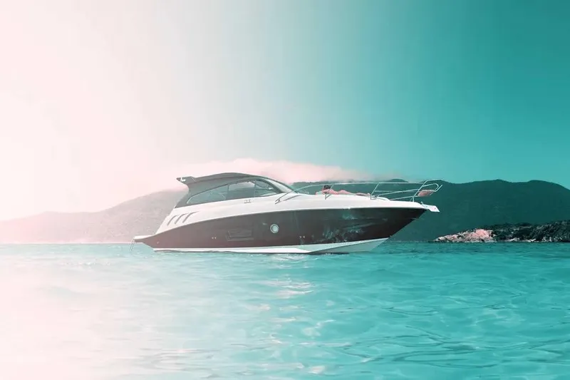 Single-color hull paint · A/C 12 000 BTU (cabin) · Synthetic teak/EVA flooring · Electric sunroof · Electric anchor windlass · Electric trim tabs · Synthetic cockpit table · Refrigerator · Electric bilge pump · Macerator pump & holding tank · Shore power inlet & 50 A cord · 100 A battery charger · Galvanic isolator · Windshield wipers · Fenders & lines · USCG safety kit · Cradle for transport