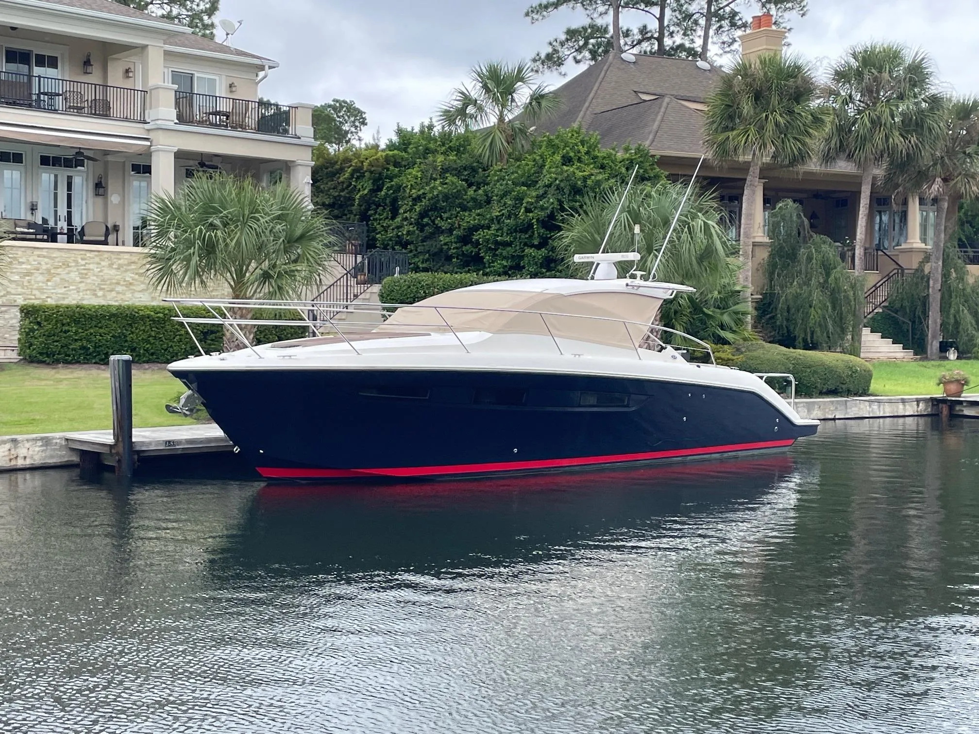 If you are in the market for a 365 Sport Coupe, "Sea Y'all" needs to be your first call. With a PAINTED MIDNIGHT BLUE HULL SIDE, custom Sureshade install, and custom boarding rails these touches set her apart from the competiti