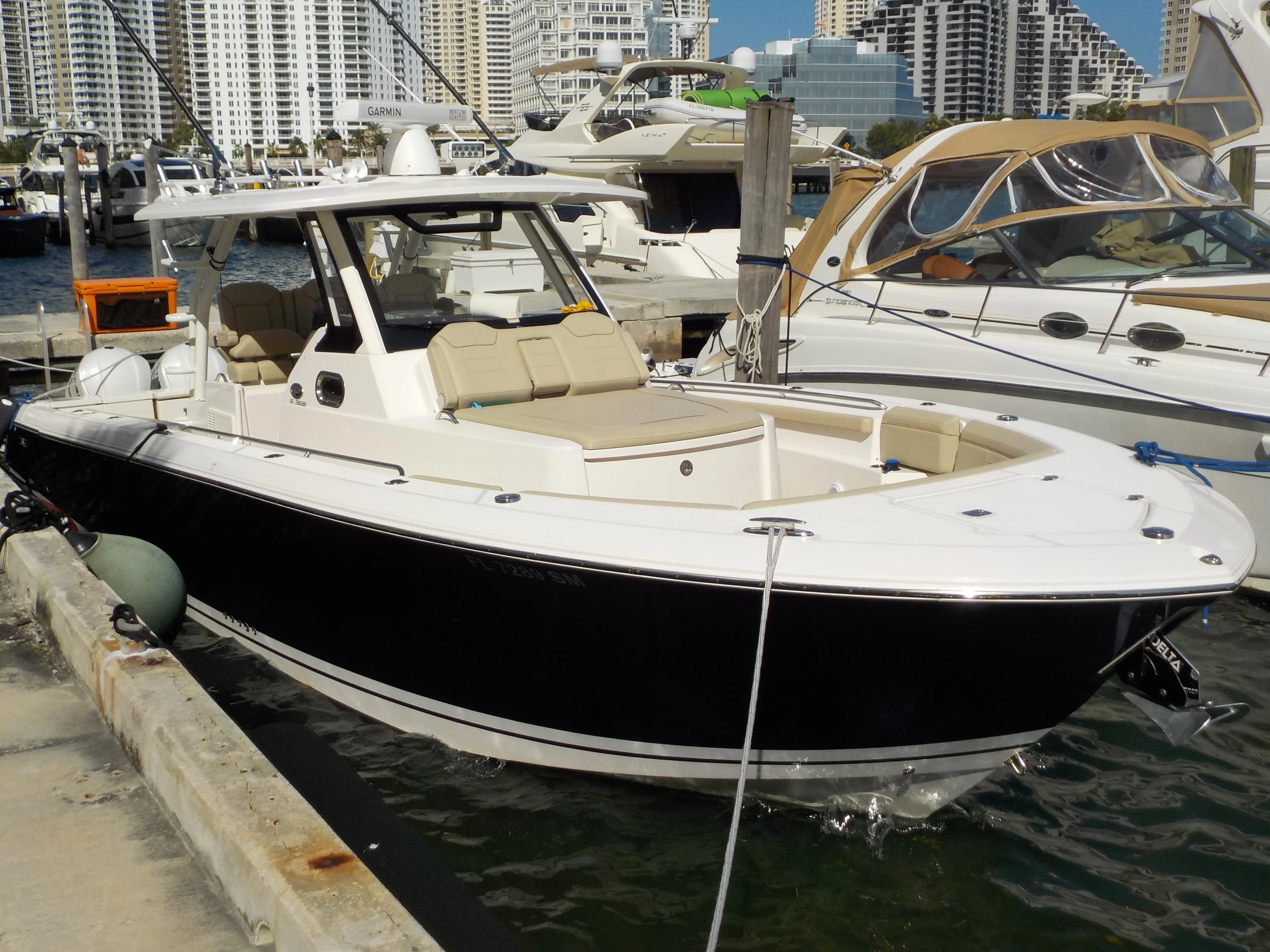 The 2019 Pursuit S368 simply checks all the boxes. Pursuit did a huge favor to the center console market! A few of her features include a large beam, and reliable Yamaha engines. Along with a nicely appointed cabin, comfortable air conditioned helm, seating galore, Garmin electronics package, bow thruster and more. It pleases the cruiser, the angler and the family! The 2019 S368 is a very comfortable vessel as its 12' beam offers tons of room forward, a large cabin in console, and aft area. The cabin has great headroom, sleeps two comfortably, has a galley and enclosed head. The cockpit has the popular dive door, refrigeration, BBQ grill, live bait well, forward adjustable seating, sun lounge seating forward and mezzanine seating aft. New to the market, do yourself a favor and don't miss out on an opportunity to see this beautiful 2019 S368 Pursuit!