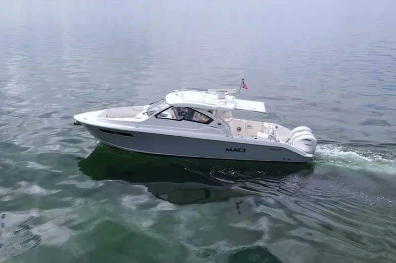 Introducing this one owner 2024 Pursuit DC 365 Dual Console, sold new by us. a remarkable vessel that combines elegance and performance. With an overall length of 37'11"feet, this boat is designed for both leisure and adventure on the water. The deep Vee hull, crafted from fiberglass, ensures a smooth and stable ride, perfect for cruising in various conditions. Powered by three robust Yamaha F300 outboard engines, each delivering 300 horsepower, this boat promises exhilarating speed and agility. With only 79 current hours of use and Yamaha Warranty till 8/30/2029 she is ready for your next journey. The interior features a cozy cabin with A/C and a well-appointed head, enhancing comfort during extended outings. Notably, the Helm Master Ex Joystick control system adds ease to maneuvering, making docking and navigation a breeze. Experience the perfect blend of luxury and functionality with the Pursuit DC 365, where every detail is designed for unforgettable moments on the water.