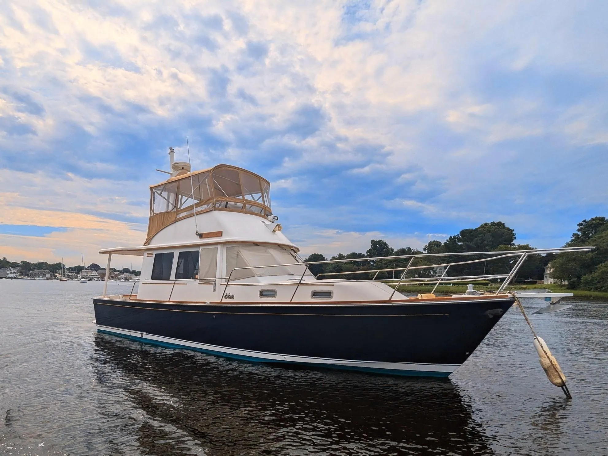 Her knowledgeable owners have continuously maintained and upgraded this 36, and it shows. Recent improvements include Flag Blue Awlgripped hull and full flybridge enclosure. This 36 Flybridge stands out in any harbor! In the water and ready to start Fall cruising.