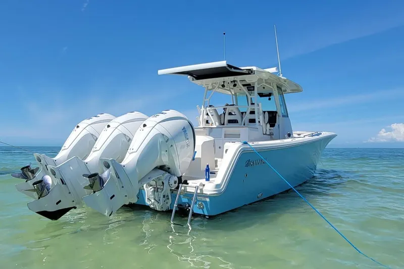 The Sailfish 360 CC combines unsurpassed quality and state-of-the-art technology with a layout and features designed for maximum versatility. Fish, play, cruise or entertain in total comfort and with total confidence in this spacious and powerful offshore performer. Its powered by triple Yamaha White F300HP four-stroke outboard.