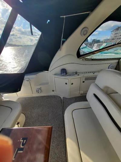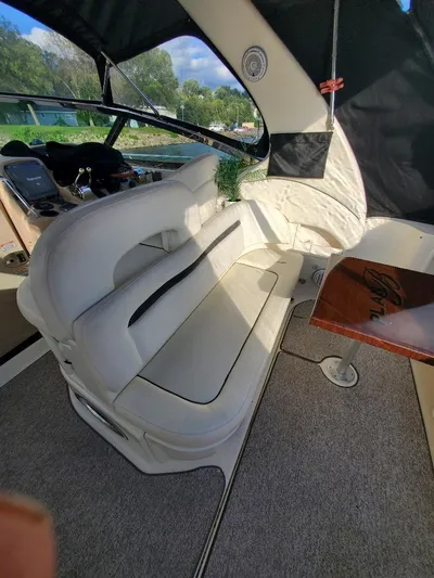 For those who have always dreamed of owning a Sea Ray Sport Yacht, the dream is now within reach. The 360 Sundancer offers plenty of seating for your friends. Her cabin sleeps six. She has a full galley, a flat screen LCD TV w/DVD in the cabin, TV/DVD combo in the forward stateroom, a wet bar and a quiet step-down conversation area. And her twin VD-8.1 S Horizon MerCruiser gasoline V-drives give you the power to go as far as your dream will take you.