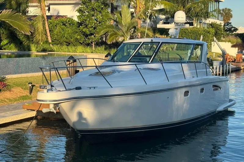 Introducing the 2004 Tiara Yachts 3600 Sovran, a stunning cruiser that combines elegance with performance. With an overall length of 41.67 feet, this vessel boasts a modified Vee hull made of durable fiberglass, ensuring a smooth and stable ride on the water. Powered by twin Crusader 8.1 MPI inboard engines, each delivering an impressive 385 horsepower, it promises exhilarating speed and reliability for your adventures. Designed for comfort and functionality, the 3600 Sovran accommodates up to 11 guests, making it perfect for entertaining family and friends. The well-appointed interior features a head for convenience, enhancing the overall cruising experience. This boat is equipped with essential features that elevate your time on the water, including a windlass for easy anchoring. Whether you're cruising along the coast or enjoying a weekend getaway, the Tiara Yachts 3600 Sovran is ready to create unforgettable memories.