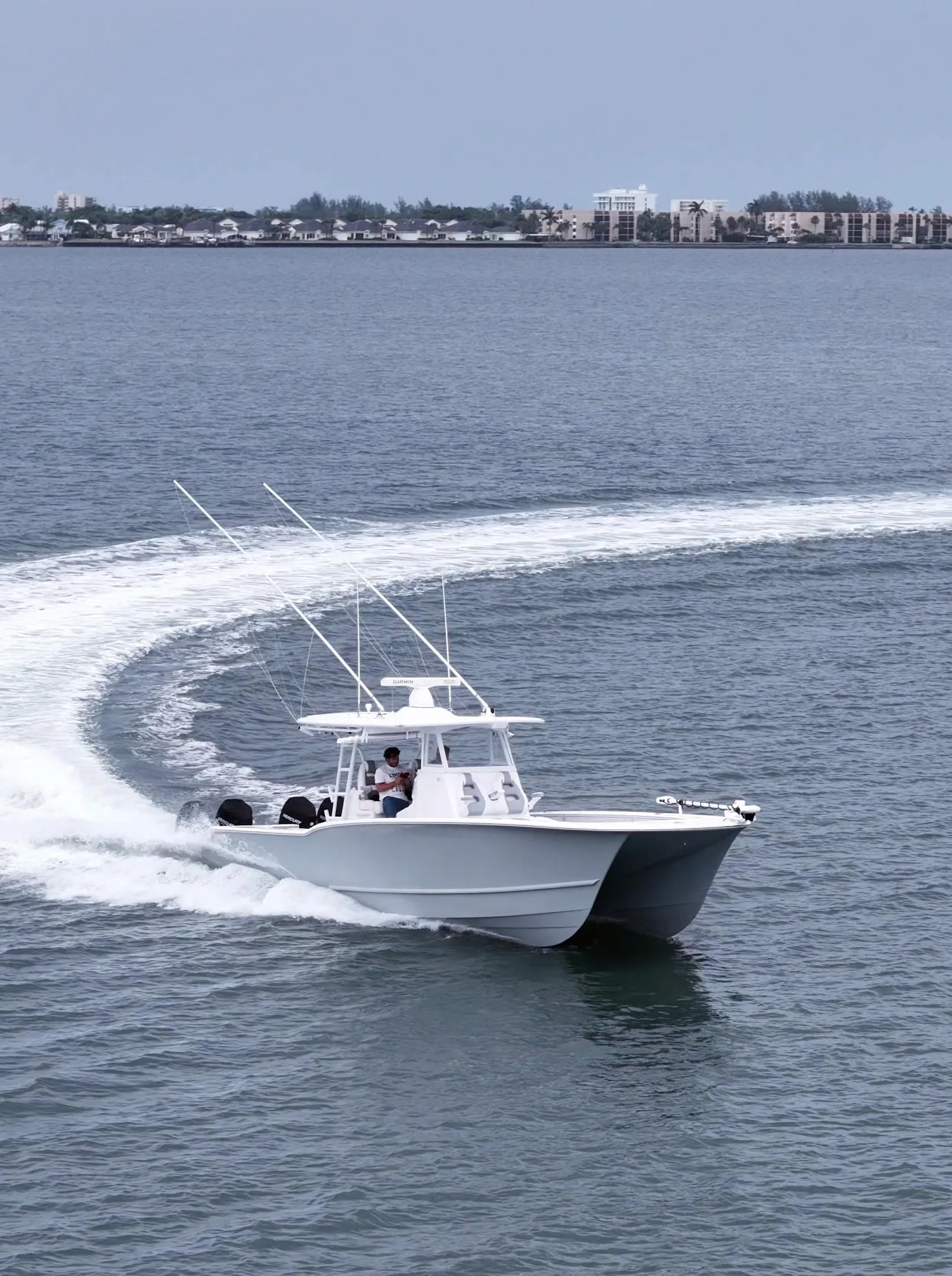 Quad 300 hp package — the fastest, most maneuverable setup available on a 36-foot cat.