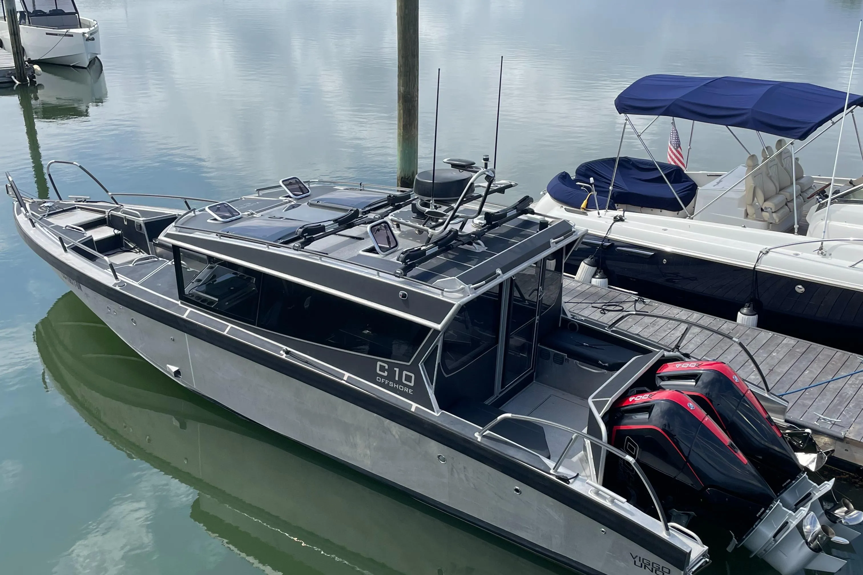 A rare Viggo C10 in the US is now available for resale. Only 4 of these meticulously crafted boats are made each year (for the world) and this one is pristine. Owner is moving to an even larger vessel, so this is a rare opportunity to experience the ultimate exploration/commuter/dayboat at a discounted price. With only 40 hrs on the Mercury 400R V10 engines this is a must see. Viggo produces the ultimate in design and performance for year-round rough water adventures. The C10 includes a full pilot house with plenty of airflow and cabin ventilators for hot summer days and also incorporates a fully sealed piloting area with redundant heat for year-round use, even in the coldest of climates. On the warm days there is a full open bow with lounge seating and stowable table for entertaining, on the colder days the party can move inside to its own removable table or if spending the night convert into a king size sleeping area without interrupting the 3 forward facing shock mitigating seats. If you are looking for a boat that can do it all and do it all with perfection year-round look no further than the Viggo C10.