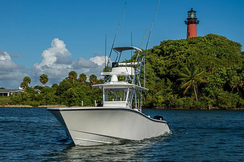 This 36 has been updated over the years to include aluminum fuel tanks, new Hardtop from Yellowfin with custom Birdsall pipe work, New electronics in 2025, Starlink, large stereo system, and tons of custom features including a offset engine bracket to allow a flush transom/splashwell.