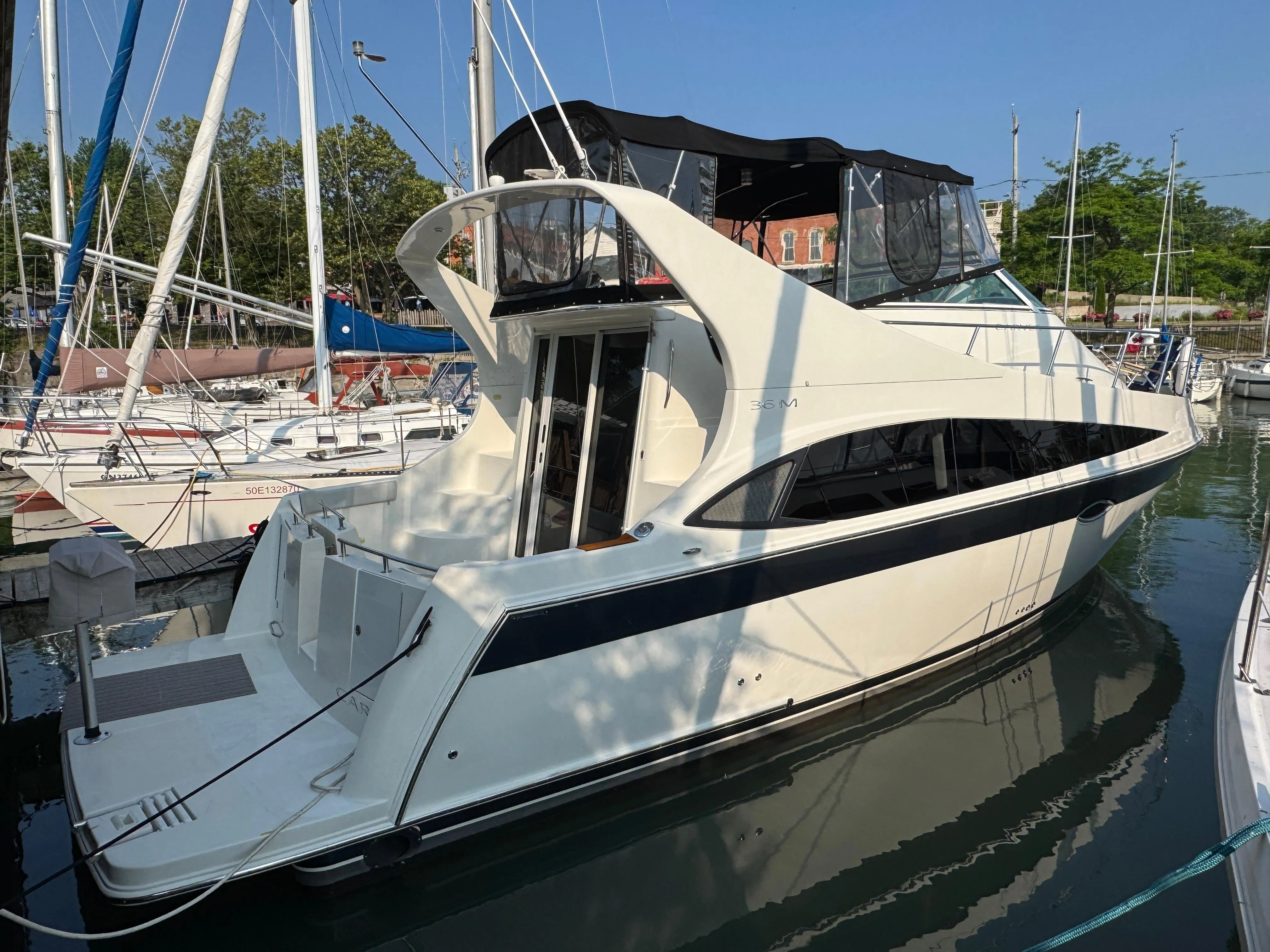 This Carver 36 Mariner is a big roomy sedan bridge with tons of great features and updated styling throughout. This partuicular boat is the perfect example of a clean freshwater vessel with low hours and added options such as bow and stern thrusters for easy docking. Please see below the list of the notable features.