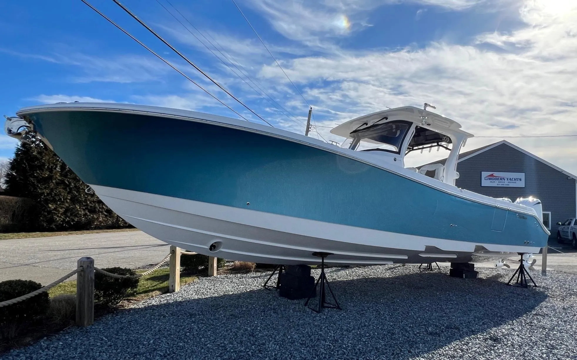 2023 Edgewater 370CC, Tourmarine Blue Painted Hull