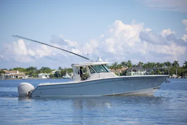 This 2021 Grady White 376 Canyon is the ultimate boat for your family cruising, fishing and traveling! Whether it is cruising around the intercoastal to the sandbar or running long distance offshore the 376 Canyon is sure to get you there with extremely reliable triple Yamaha 425 power and Seakeeper 5. At 37 feet this boat offers all the amenities of a larger vessel including the spacious console cabin with A/C, built in refrigeration, grill, ample seating forward with a hi/lo dinette table doubling as a casting deck, and full helm enclosure making it feel much more spacious but at the same time keeping the maintenance at a minimum. The Yamaha engine warranty is through November, 19th 2025 and eligible to purchase up to two additional years.