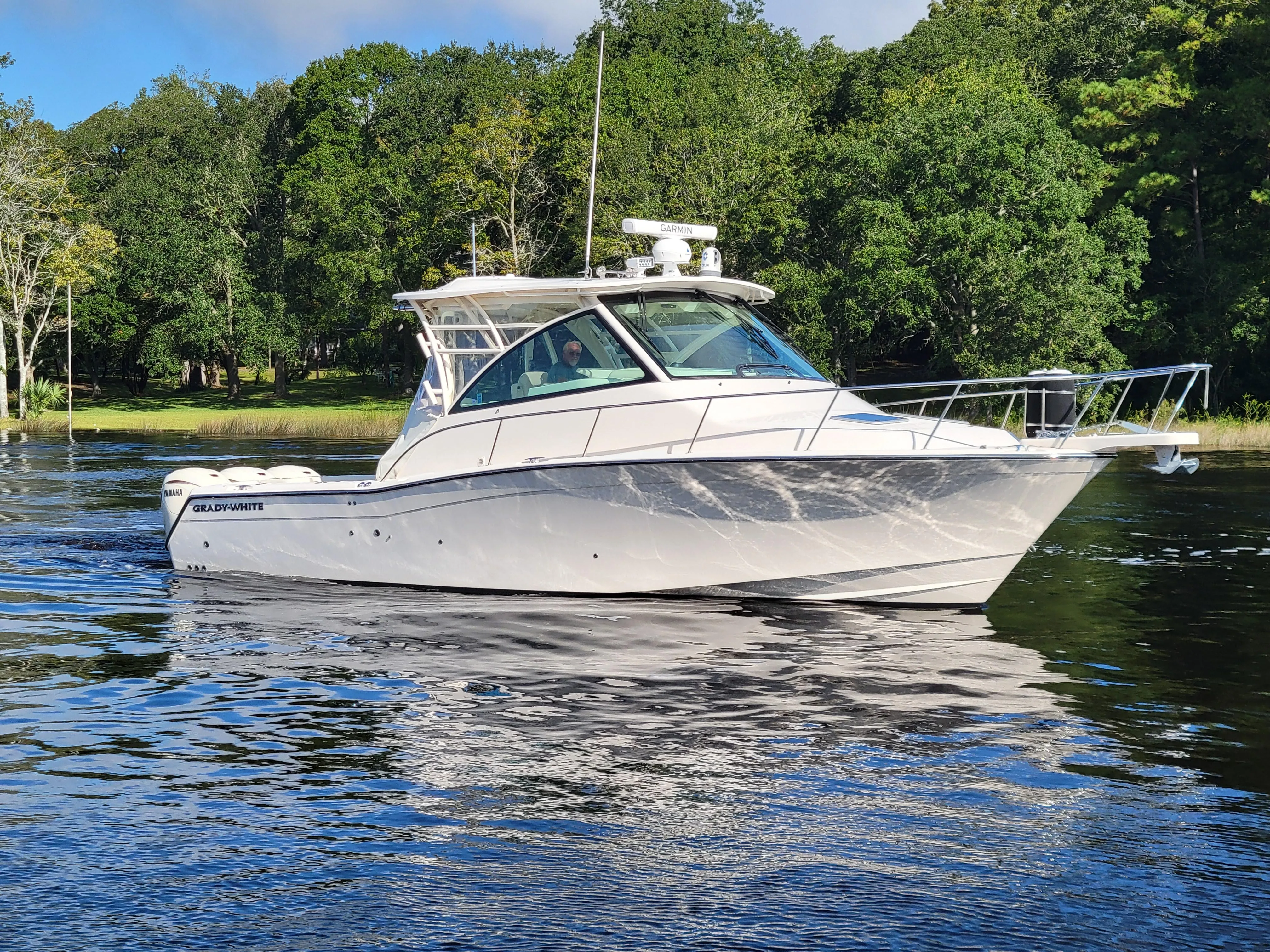 With custom yacht qualities, the Express 370, a 37-foot express cabin boat, offers more exceptional details, ample cabin room, performance, and reliability than many inboard boats that are larger in length! You will be amazed at the multitude of standard features on this best cabin cruiser boat. From the AV²® hardtop with electronically sliding sunroof, mass amounts of storage, the most comfortable seating options, and a grand cabin complete with galley to the convertible dinette area and enclosed head, no stone has been left unturned in the design of this boat. A favorite among Grady owners, the 370 is a luxurious family cruiser that’s equally well-suited for offshore saltwater sportfishing.