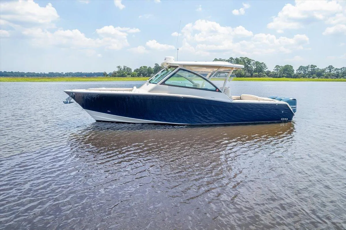 Excellent Grady White Freedom 375 with Triple Yamaha 350s and all the right options. Never fished, maintained to the highest standards, and stunning recent Flag Blue Awlgrip hull make her a standout among peers.