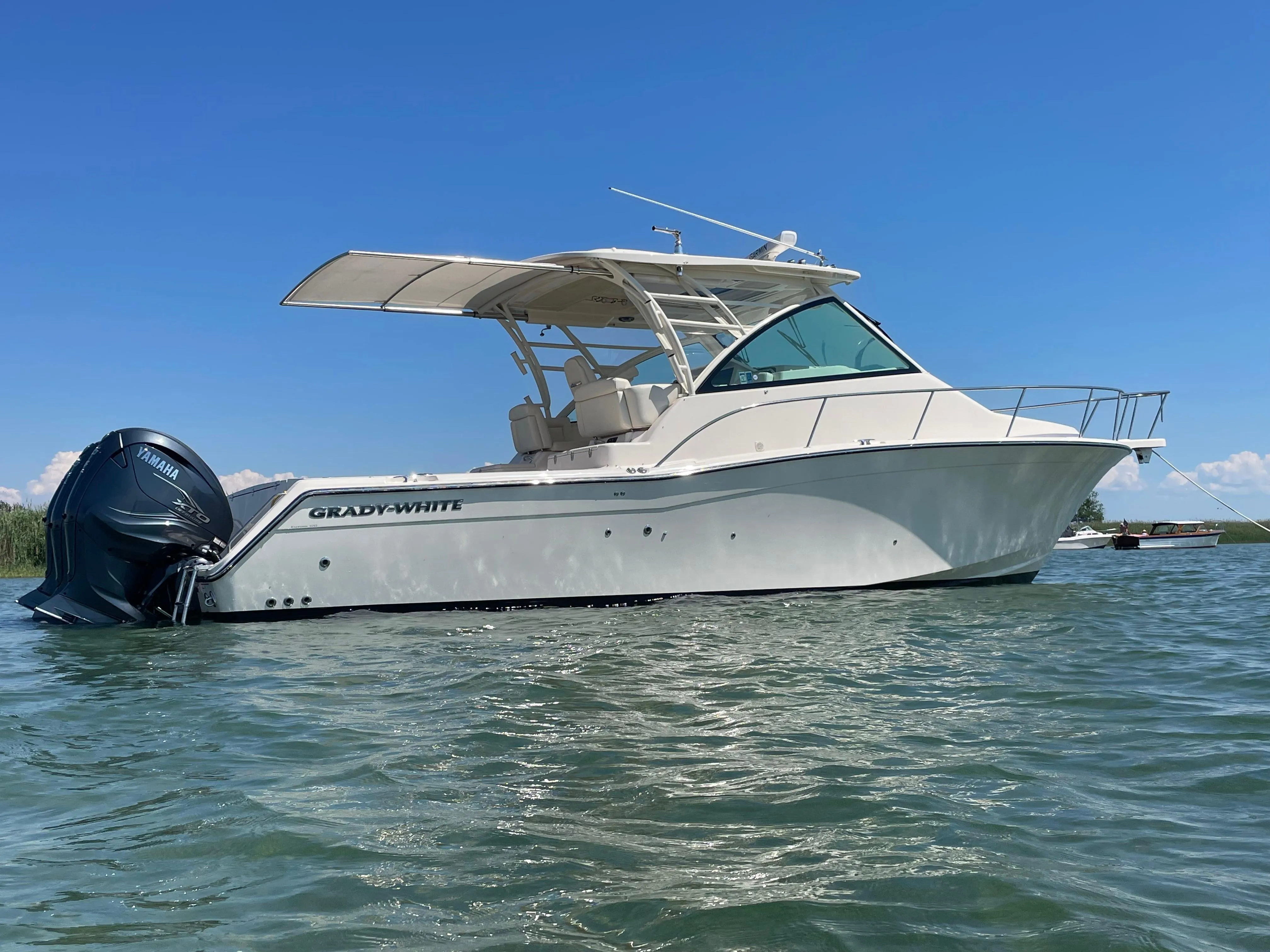 The 370 is Grady White's flagship of the Express Models and very popular. She offer a great dry ride thanks to the SeaV2 hull design and offers good performance with the trip. Yamahas 425 hp .