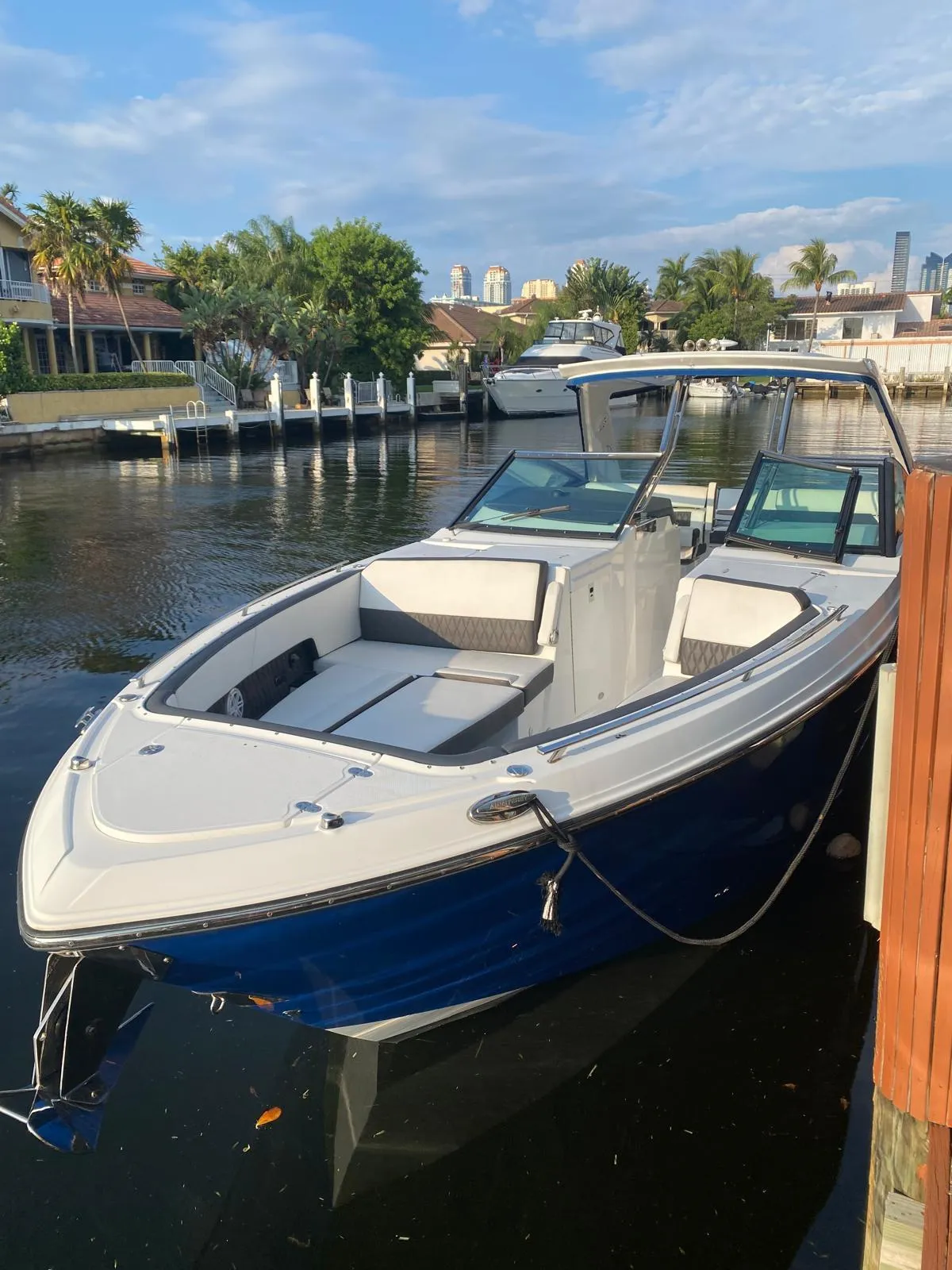 The 2019 Monterey 385 SE (Super Express) is a luxury bowrider that blends high-performance capabilities with upscale comfort, making it ideal for both day cruising and overnight stays.