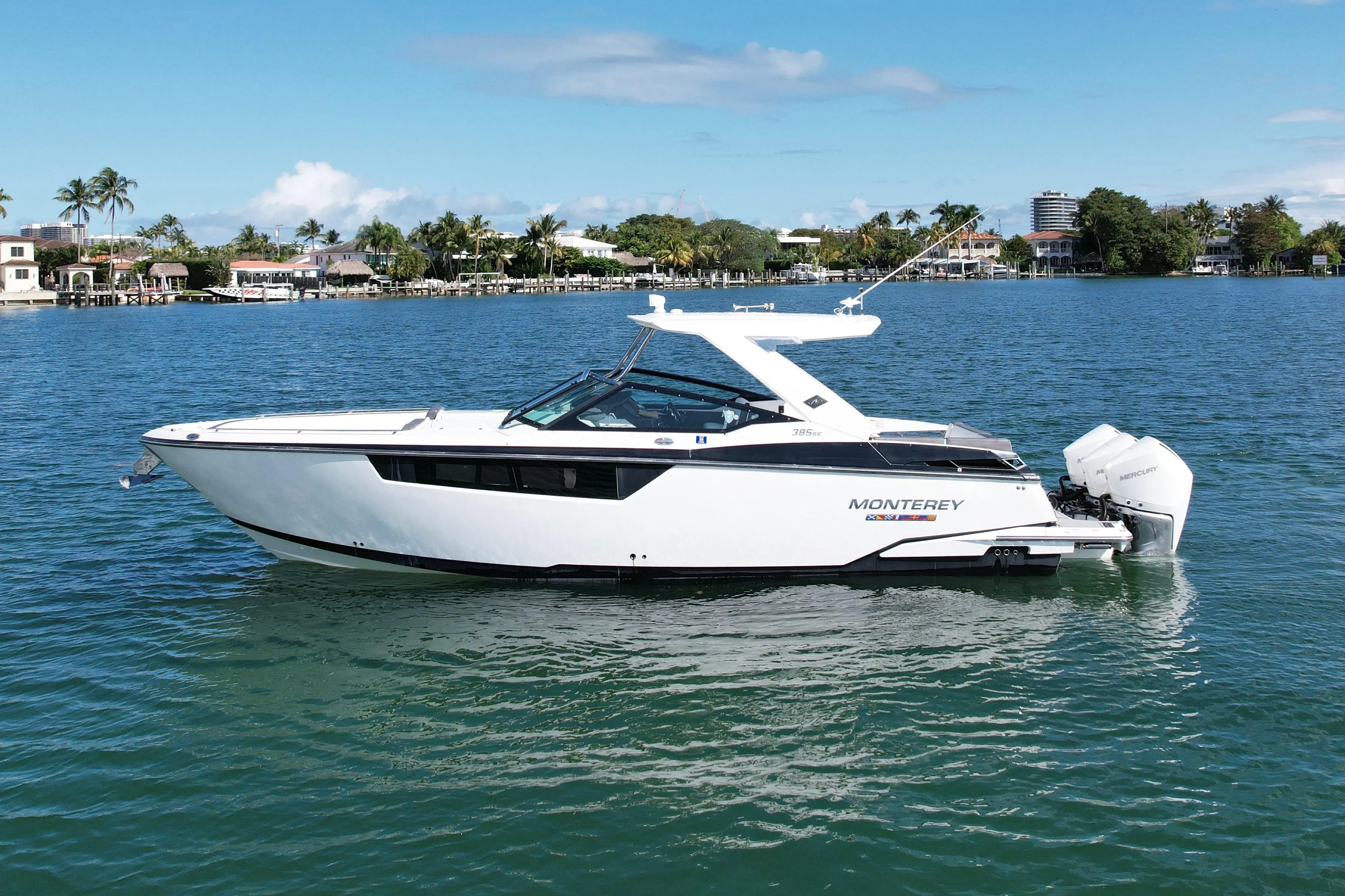 ~ Introducing the 2019 Monterey 385 Super Express, a stunning bowrider that combines elegance with performance. This vessel boasts a robust fiberglass hull with a sleek Deep Vee shape, ensuring a smooth and stable ride on the water. Powered by three powerful Mercury outboard engines, each delivering 300 hp, this boat promises exhilarating speed and responsiveness, perfect for thrilling adventures or leisurely cruises. Designed for comfort and enjoyment, the Monterey 385 Super Express is ideal for entertaining friends and family. Its spacious layout allows for ample seating, making it a perfect choice for social gatherings on the water. The advanced features, including joystick control, enhance maneuverability, ensuring effortless navigation. This used model is in excellent condition, ready to provide unforgettable experiences on the water. Experience the perfect blend of luxury and performance with the Monterey 385 Super Express, where every journey becomes a memorable adventure.