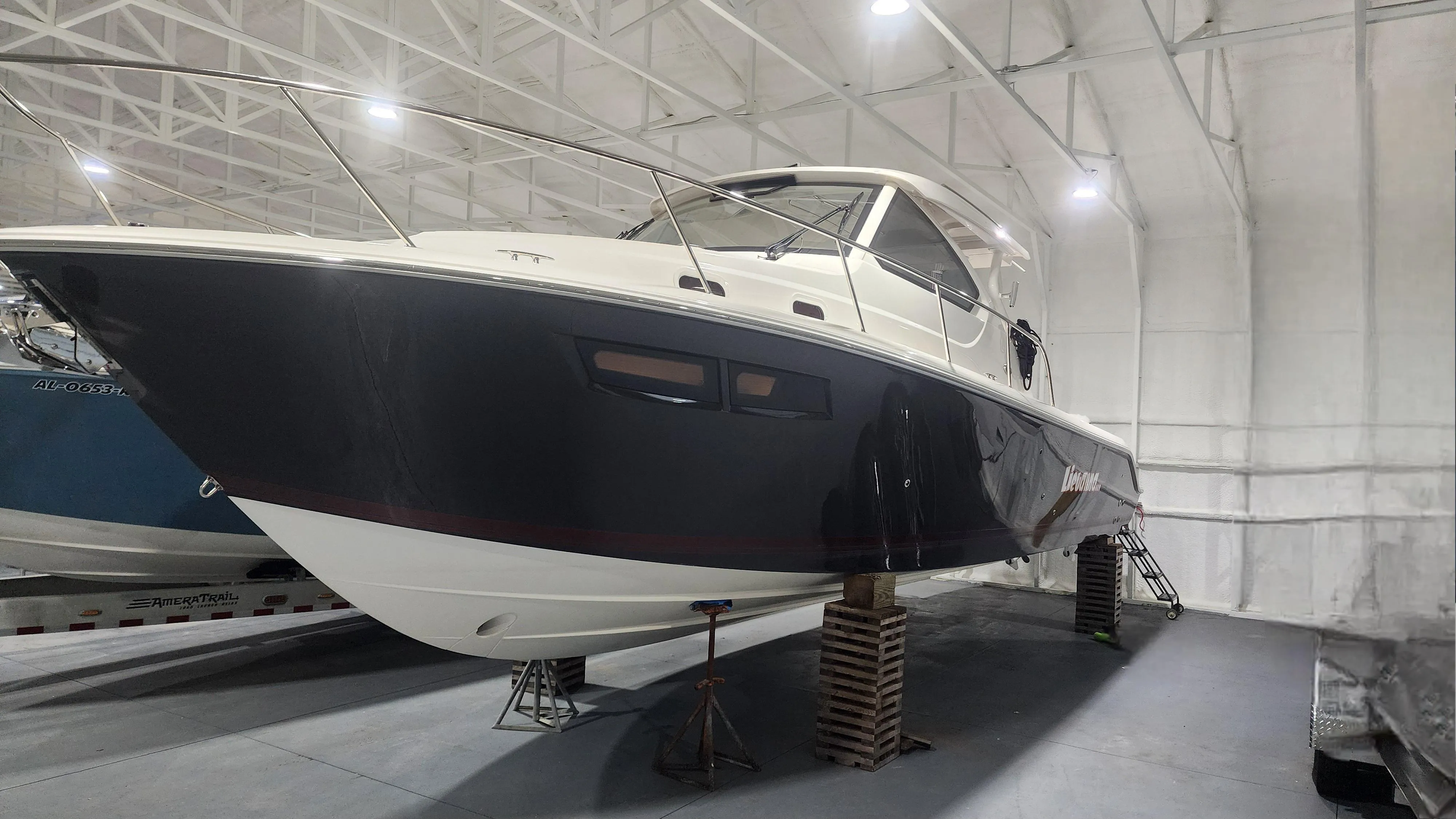 Molded Fiberglass Hardtop Integrated Visor Powder Coated Aft Structural Hardtop Supports with Rod Holders (4) Custom Windshield System with Optically Clear Laminated Windshield Glass, Tempered Side Glass with Infused Fiberglass Frame and Electrically Actuated Center Vent Window Custom Stainless Steel Ratcheting Anchor/Stern Light with Burgee Rings Four (4) Tri Color LED Lights Aft Facing Spreader Light 316L Stainless Steel Fore/Aft Underside Grab Rails 316L Stainless Steel Fore/Aft Topside Grab Rails Integrated Stereo Speakers (4) 60 mil Strataglass™ Side Curtains 3 Piece Drop Curtain Integrated Life Jacket Storage Integrated Port & Starboard Overhead Glove Boxes Horn, Dual Trumpet Port and Starboard Ventilation Hatches with Screens Fiberglass Hardtop with Dedicated Radar, Antenna and Outrigger Locations