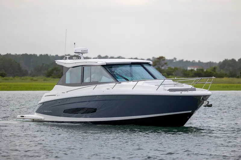 New to the market and in pristine condition, this 2022 Regal 36 Grande Coupe has lived a pampered life on freshwater (Lake Norman) until arriving in Wilmington, NC in August 2025. She has only been in saltwater once for photos, and was thoroughly flushed and cleaned immediately after.