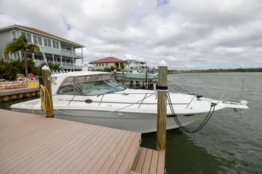 The 2000 Sea Ray 370 Express Cruiser has a wide-open dual-level cockpit design, raised bridgedeck, and wide 14-foot 2-inch beam to provide a dry and safe ride. The 370 Express Cruiser has an aggressive power plant - 350 horsepower twin Cats. Combined with a 350 gallon fuel capacity, that means it can go anywhere, and quickly. This is a great example of Sea Ray 370 Express that is in great running condition ! Call and schedule a showing today