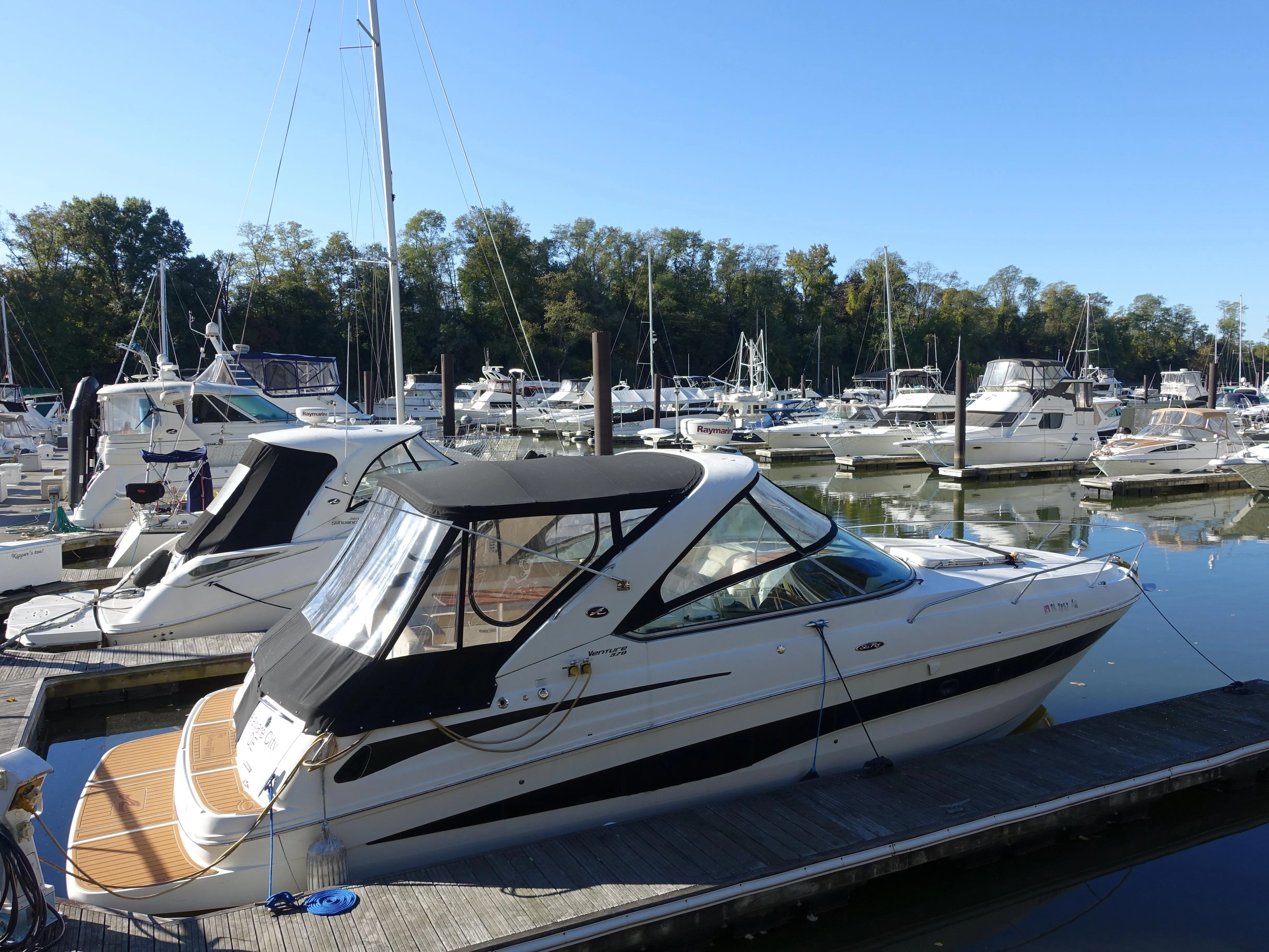 REDUCED!!!!!This 2013 37 Sea Ray Venture is powered by TWIN Mercury Verados boosting 300 HP Each giving you a total of 600 HP, with a LOW 250 hours!!!! Some of her options include a Bow Thruster, Cockpit Refrigerator, Cockpit Sink, Longer in cockpit, and cockpit seating for 9, Seadek Flooring throughout cockpit, Seadek flooring on platform, Electric Reclining Sunpads on bow, Garmin Chart Plotter, and much much more. Upon entering her cabin your greeted by a spacious layout, Galley to left with microwave, refrigerator, 2 burner electric stove and ample storage. Your full head/shower is to your right, forward you have queen birth, storage, flat screen TV and additional storage, upon entering the aft cabin there is a privacy curtain which separates a large aft sleeping quarters with a full size birth, in addition to more storage and seating. The beautiful part of this vessel is you have a open layout with TWIN OUTBOARD MOTORS!!!!!