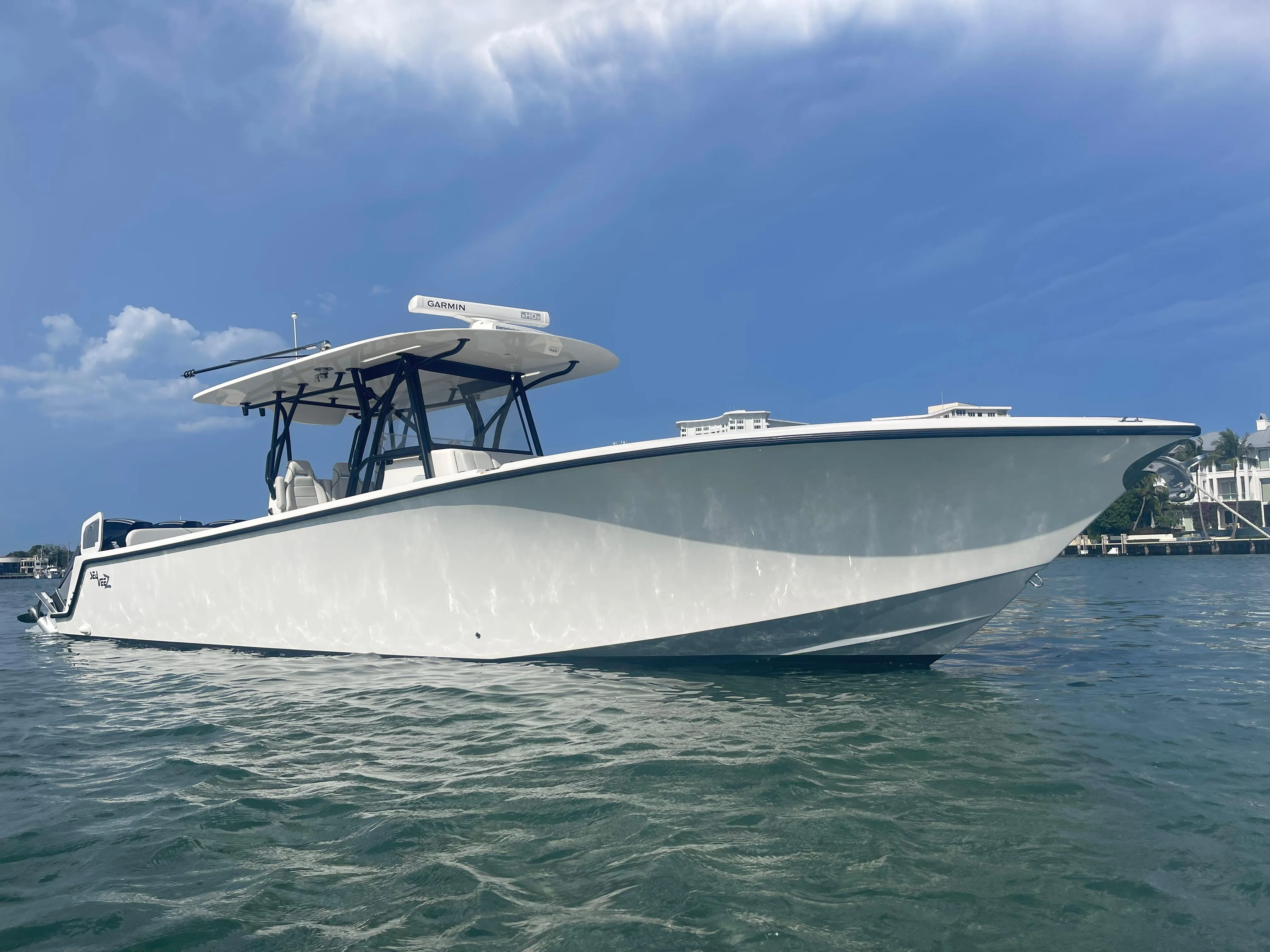 "GUNROCK" is Practically a New Boat. Meticulously Kept and Very Nicely Equipped for Both the Serious Fisherman and/or Comfortable Outings with the Family. 2023 370Z SeaVee Center Console, Powered by the Very Reliable Mercury 300 HP 4-Strokes with only 180 Hours and Platinum Warranties until June 2028, Mercury Joystick System, Oversized Fiberglass Hardtop with Black Powdercoated Finish on the Framework, Mezzanine Seating and Insulated Drink Box, Custom Removable Full Transom Bench Seat, Gemlux Bluewater Carbon Fiber Telescoping Outriggers, New Canvas Covers Dark Gray, Walk-Thru Forward Seating, Windlass, Marine Head with Holding Tank, Full Garmin Electronics Package, Premium JL Audio Sound System and Much More....