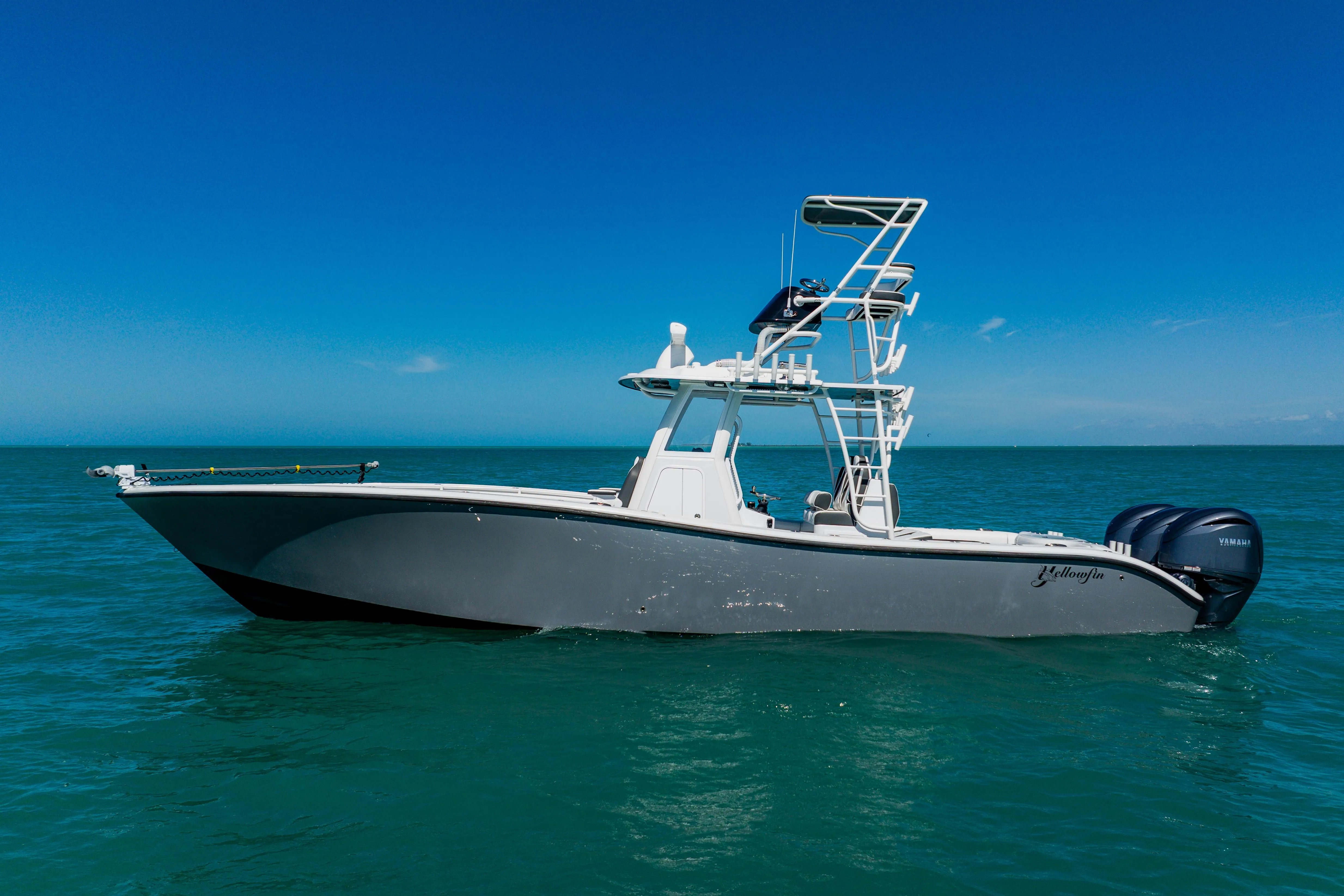 Finished in Shark Grey hull sides over a Black bottom, she stands out at the dock and offshore alike. A Yellowfin custom second station transforms this 36 into an elite tournament-ready platform with unmatched visibility and control.