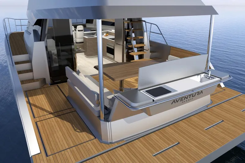 Thanks to its multihull design, the Aventura 38 delivers exceptional stability, fuel efficiency, and interior volume. Wide beam living spaces, a bright panoramic saloon, and multiple social zones make it ideal for entertaining, family cruising, or extended time on the water.