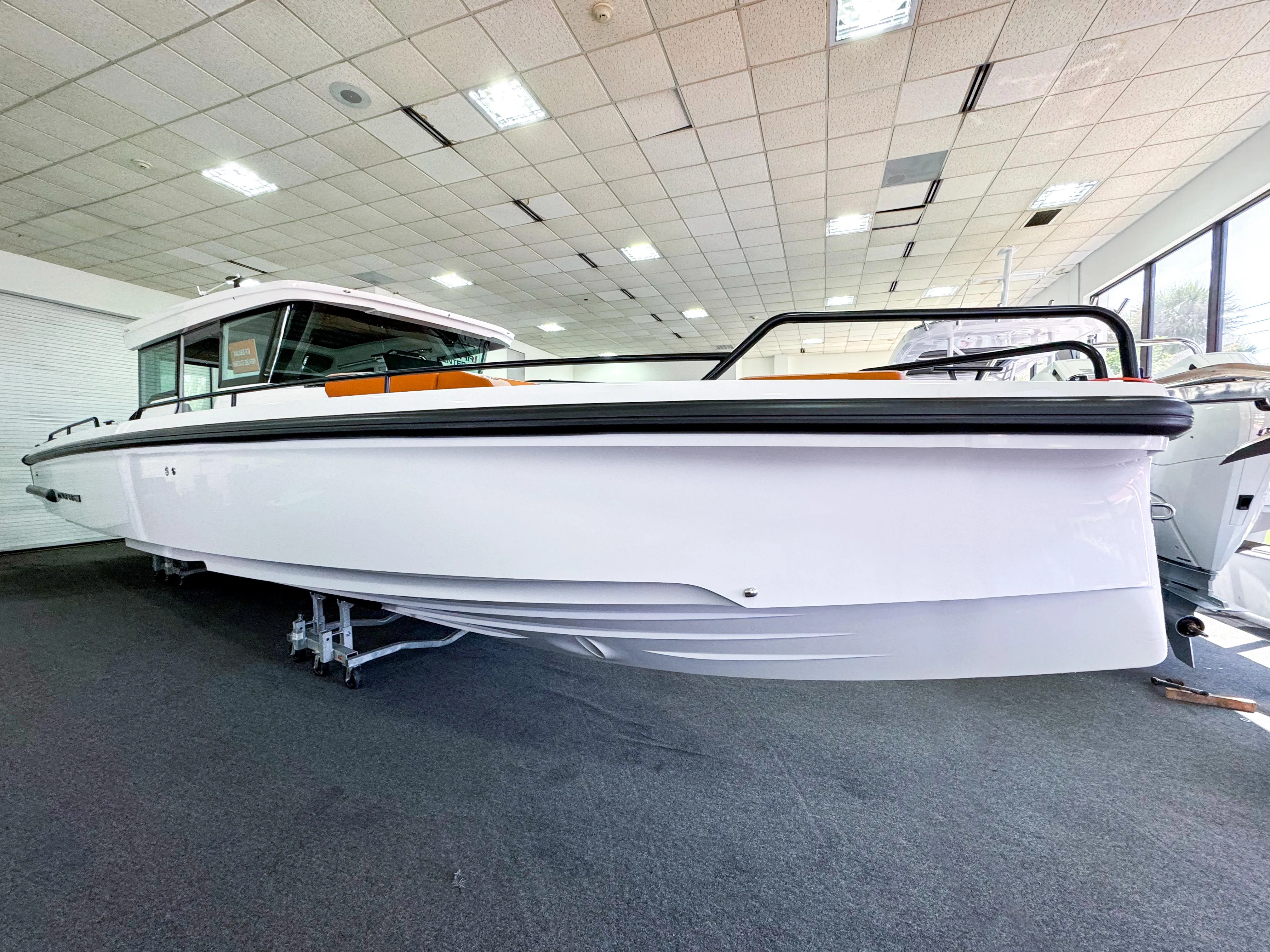 This model combines the functionality, ease of movement, social outdoor and indoor spaces and versatility of outboard walkaround centre-consoles with a spacious, fully enclosed weather proofed cabin, that with distinctive looks challenges traditional perceptions of cabin boats.