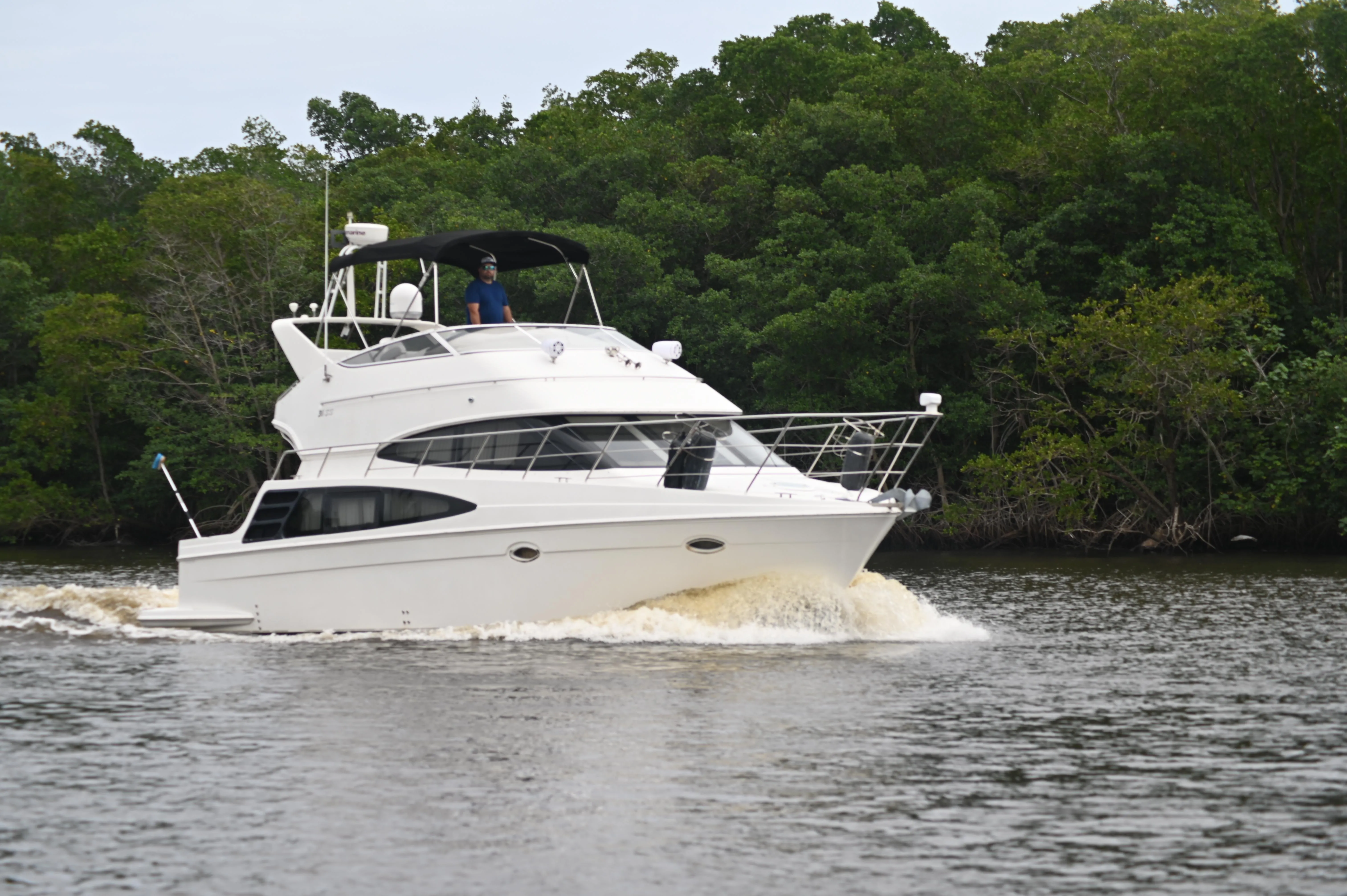 Escape from the ordinary experience with the extraordinary 36 Super Sport. Its generous exterior and interior spaces offer a true departure from comparably sized yachts, as does its fuel capacity, the largest in her class. This versatile model is available in two interior configurations - a single stateroom featuring a face-to-face dinette, or the two stateroom layout with a mid-ship cabin. There's also your choice of bridge layouts - the forward helm station for extended cruising, or the aft helm and optional fishing package for recreational and water activities. Either way, there's safe and easy access to the foredeck. The design makes full use of the over 13' beam to maximize interior volume, along with generous windows for ample natural light. The ideal master stateroom includes a queen-sized island berth with pillow top innerspring mattress, along with private access to the head with an enclosed shower stall. The 36 Super Sport is C.A.S.T.-built to perfection and fully featured to include air conditioning, Kohler generator, and SeaKey as standard onboard equipment, as well as our Carver Docking System with bow and stern thrusters.